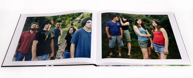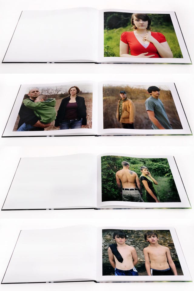 The family unit, siblings, extended family, and the individuals who make up these large trees, is the subject of photographer Lydia Panas’ hardback book of glossy, meticulous portraits, aptly titled The Mark of Abel. Thinking back on the biblical story of Cain and Abel, Panas’ clever reverse of the “mark” seems to imply that her subjects and viewers alike suffer Abel’s curse of brotherhood, fraternity, and family. It’s a rich theme for rich photographs, set in an Eden-like location of lush and overgrown greenery. Ninety-five pages long, containing fifty perfectly paced photographs, The Mark of Abel presents us with hundreds of strangers, all of whom feel bizarrely familiar. Panas’ family portraits are tender rather than sentimental, serious though not cynical, and dysfunctional without being cliché.