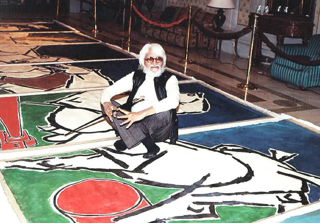 Husain has been associated with India’s Progressive Artists Group (PAG), founded in 1947. PAG’s visual lexicon drew from European art genres such as Cubism and Expressionism. Husain had his first solo show in 1950; soon after, his career took off to an unparalleled degree. In the first two decades of his artistic journey, he was fervently inspired by modern art forms, introducing abstraction in his work, as heavily stylized characters and motifs evoking India’s rural areas, villages, and folk art informed his themes. His paintings, such as “Zameen” (“Land,” 1955) and “Arjuna with Chariot (Mahabharta 15)” (1971), and his film, Through the Eyes of a Painter (1967), earned him local praise and international acclaim for his personal interpretation of the “beloved motherland” of India and representation of the common Indian man. Husain’s dynamically charged works fused modernist abstraction with a romanticized vision of traditional rural landscapes, winning him several important art prizes and awards, and making him the leading modern artist of his time in India.