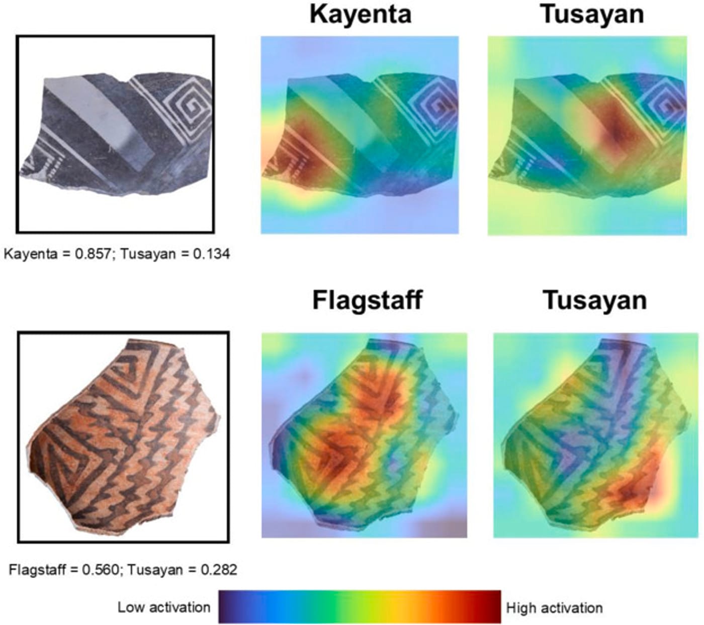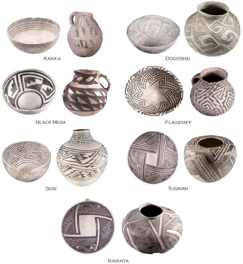 As the title suggests, the study focused on sherds from fragments of Tusayan White Ware, a type of hand-formed painted pottery often found in Northeastern Arizona, used mostly for serving food and transporting and storing water during the Pueblo I through Pueblo III time periods (approximately 825–1300 CE). Vessels typically have geometric designs rendered in dark brown and black organic paint on white backgrounds. Researchers assigned the task of using digital photos of thousands of sherds to sort styles to human experts, and compared the results to those of Convolutional Neural Networks (CNNs) given the same assignment. Motifs include the checkerboard-style “Black Mesa”; the “Dogoshzi” wings and curves filled with diagonal lines; and at least a half-dozen other known typologies that feature discernible differences in brushstroke, line width, and decorative fill variations.