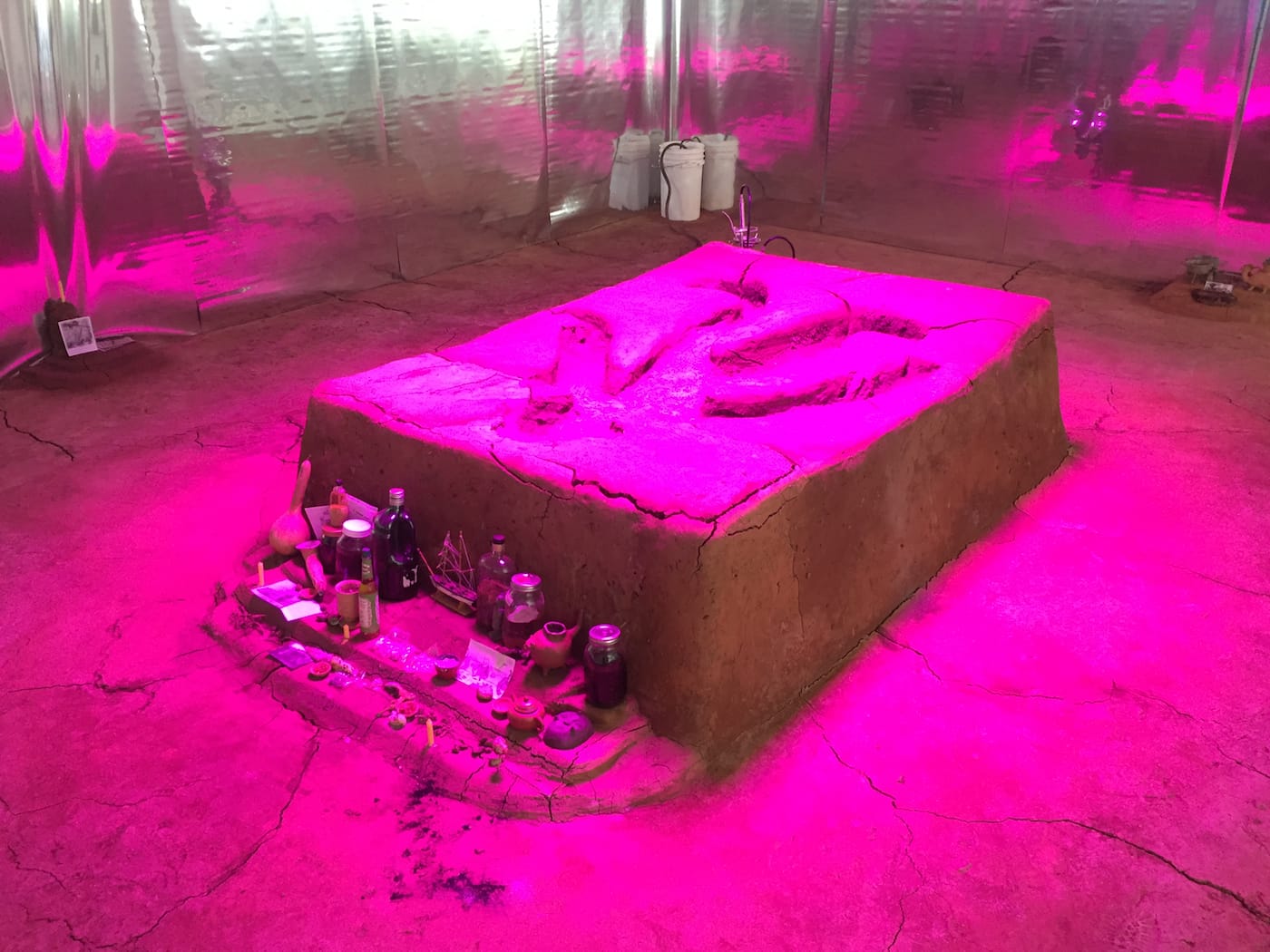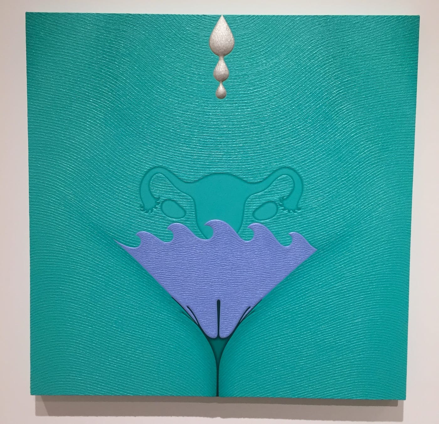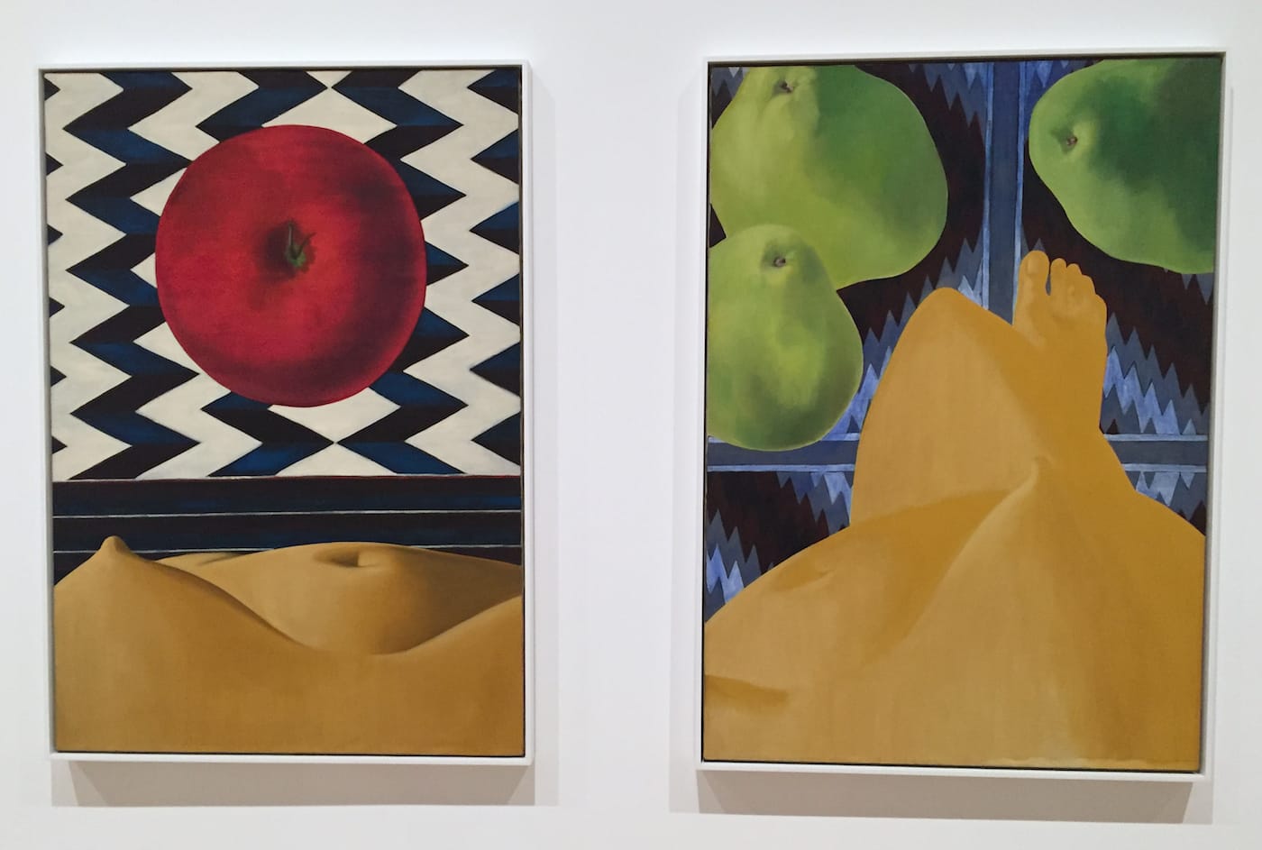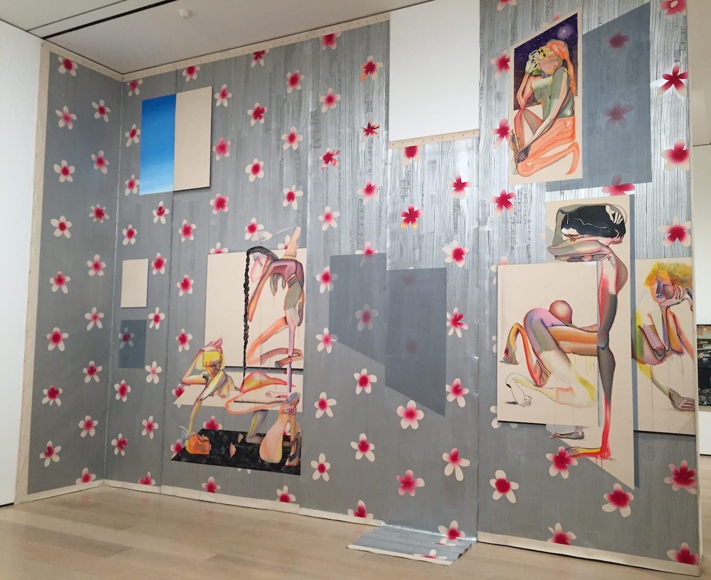Some of these artists represent the body itself, as with paintings by Christina Quarles, Celeste Dupuy-Spencer, and 97-year old artist Luchita Hurtado, who has two bodies of work from the late ’60s and early ’70s on view. In one series, the geometric designs of floor rugs are interrupted by her nude body parts, monumental and unapologetic, as seen from her point of view. (Showcasing the work of late-career artists like Hurtado who are finally getting their due seems to be a pattern with Made in LA, following the inclusion of artists like Huguette Caland and Kenzi Shiokova in 2016.) Charles Long’s room-size installation is an ambitious phallus-filled fantasy, though the numerous members are depicted in castrated cross-section, a hopeful vision of the death of the patriarchy.