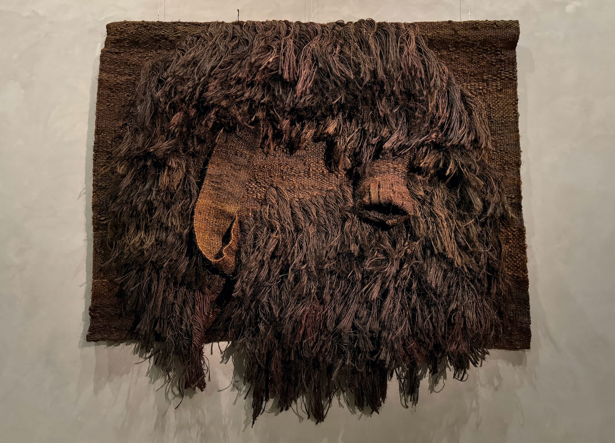At Bourdelle, this piece neighbors the imposing “Abakan Red” (1969), a hanging sculpture whose two giant flaps form the backdrop for an erect sword-like protrusion. While both works have sexual connotations, the more you look the more complex they appear, synthesizing tensions between softness and hardness, flaccidity and tautness. “Abakan Red”’s upraised, tensed spike draws attention to its droopy downward flaps, and vice versa. Likewise, the textures — most often, burlap and sisal — range from velvety to forbiddingly asperous. (Visitors can experience this by touching various ropes displayed in an educational vitrine.)