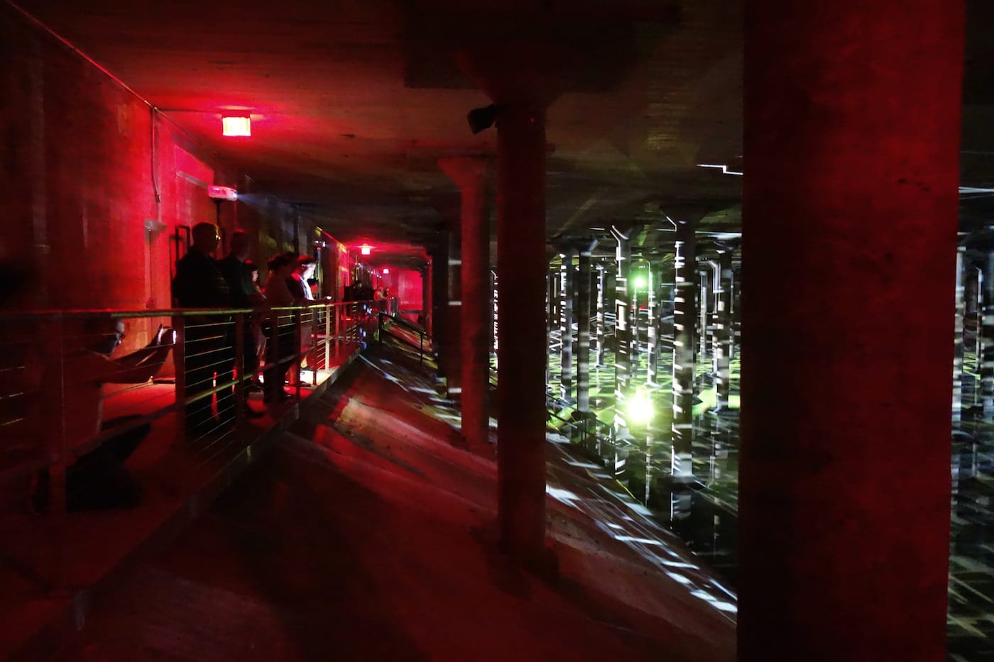 Back in September, Hyperallergic reported on the first art to interact with the Cistern: Donald Lipski’s “Down Periscope.” It allowed visitors the park, and online viewers, to gaze into the reservoir. Lipski noted at the time, that in his initial visit to the space, it was necessary to enter “through a hatch, down a vertical ladder.” Now there is an accessible tunnel, with a perimeter walkway.
