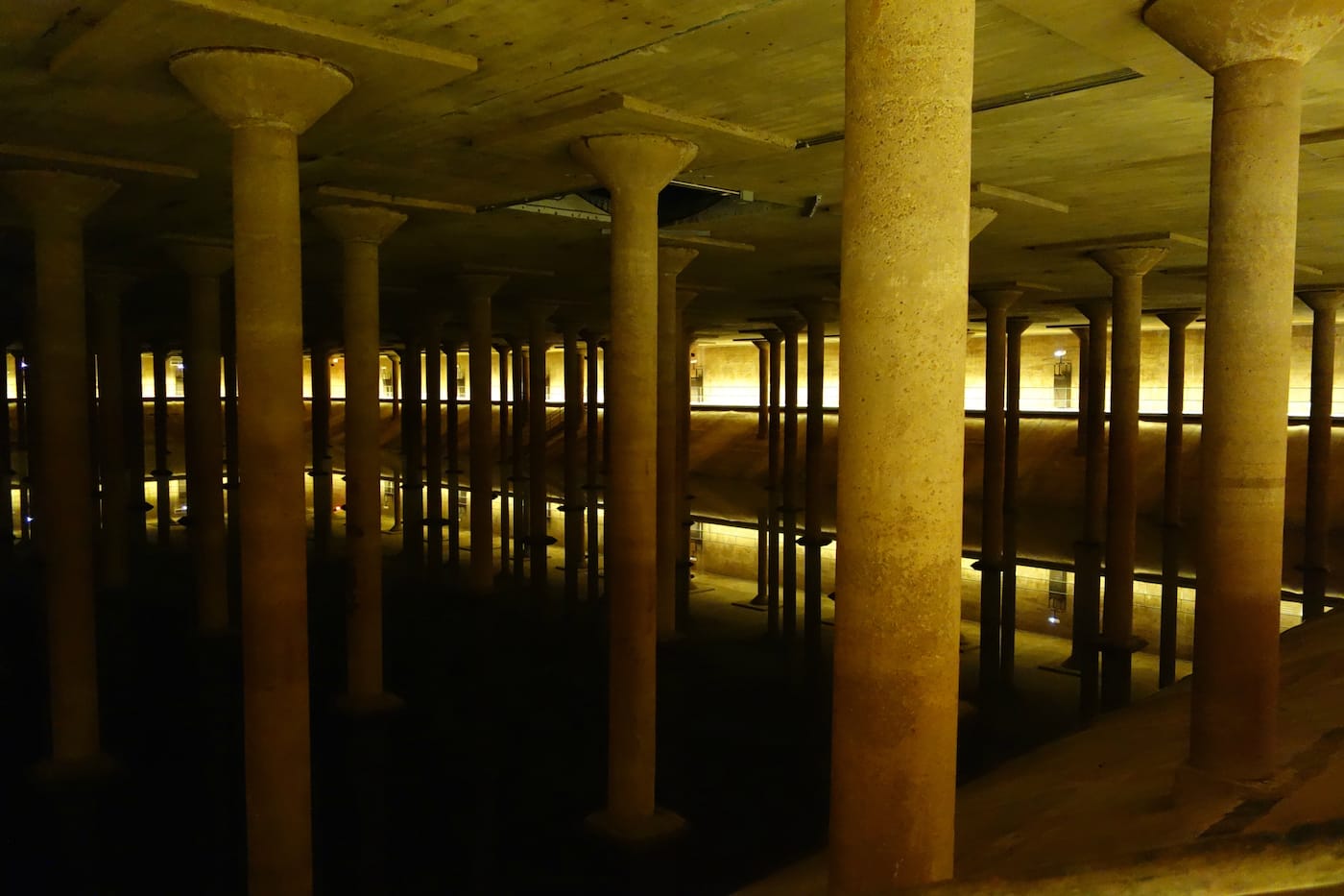 The Buffalo Bayou Park Cistern itself only opened to the public this May, part of the redeveloped Buffalo Bayou Park on the edge of downtown that offers pedestrian-friendly walkways and greenspace around the previously inaccessible waterway. While the underground reservoir was decommissioned in 2007, and by 2010 being actively considered by the city for demolition, it was reimagined as a public resource within the park. Its new name references its resemblance to the ancient Roman cistern in Istanbul, although its 221 25-foot columns that form a matrix over 87,500 square feet are a more recent work of infrastructure.