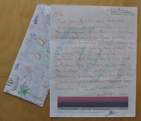 It’s only natural that some mail art should focus not on the content of the package but on the envelope itself. After all, the envelope is an integral part of what defines mail art. To illustrate that, we’re posting a collection of envelopes that we’ve received for our ongoing Mail Art Bulletin.