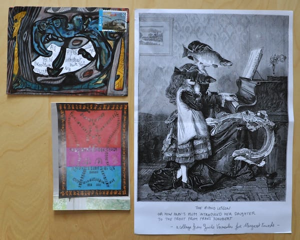 This short retrospective should make you think: what exactly constitutes “mail art”? We’ve been pondering that question while looking over the diverse group of works we’ve been sent. Is mail art just art that has been mailed? Or does the work have to engage with the genre of mail art itself, making transformative use of stamps, envelopes and paper materials?