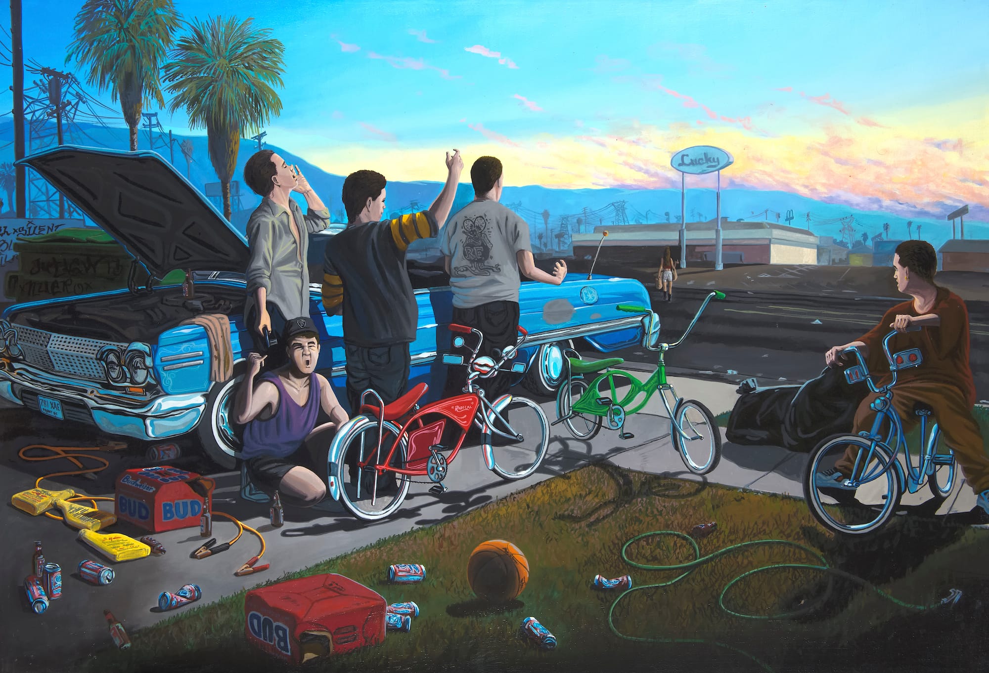 Platt says representing the OC is an important part of the museum’s mission, so two galleries will have a “hyperlocal” focus dedicated to an artist from the area, beginning with the late Emigdio Vasquez, whose oil paintings depict pachuco culture, rendering zoot suits, lowrider cars, pool halls, and night clubs in painstaking detail. His painting of a bowl of menudo portrays the traditional Sunday meal in many Mexican and Mexican-American households with the reverence of an Old Master still life. Notably, a gorgeously restored mural by Vasquez, “El Proletariado de Aztlán” (1979), is located just blocks from the museum.
