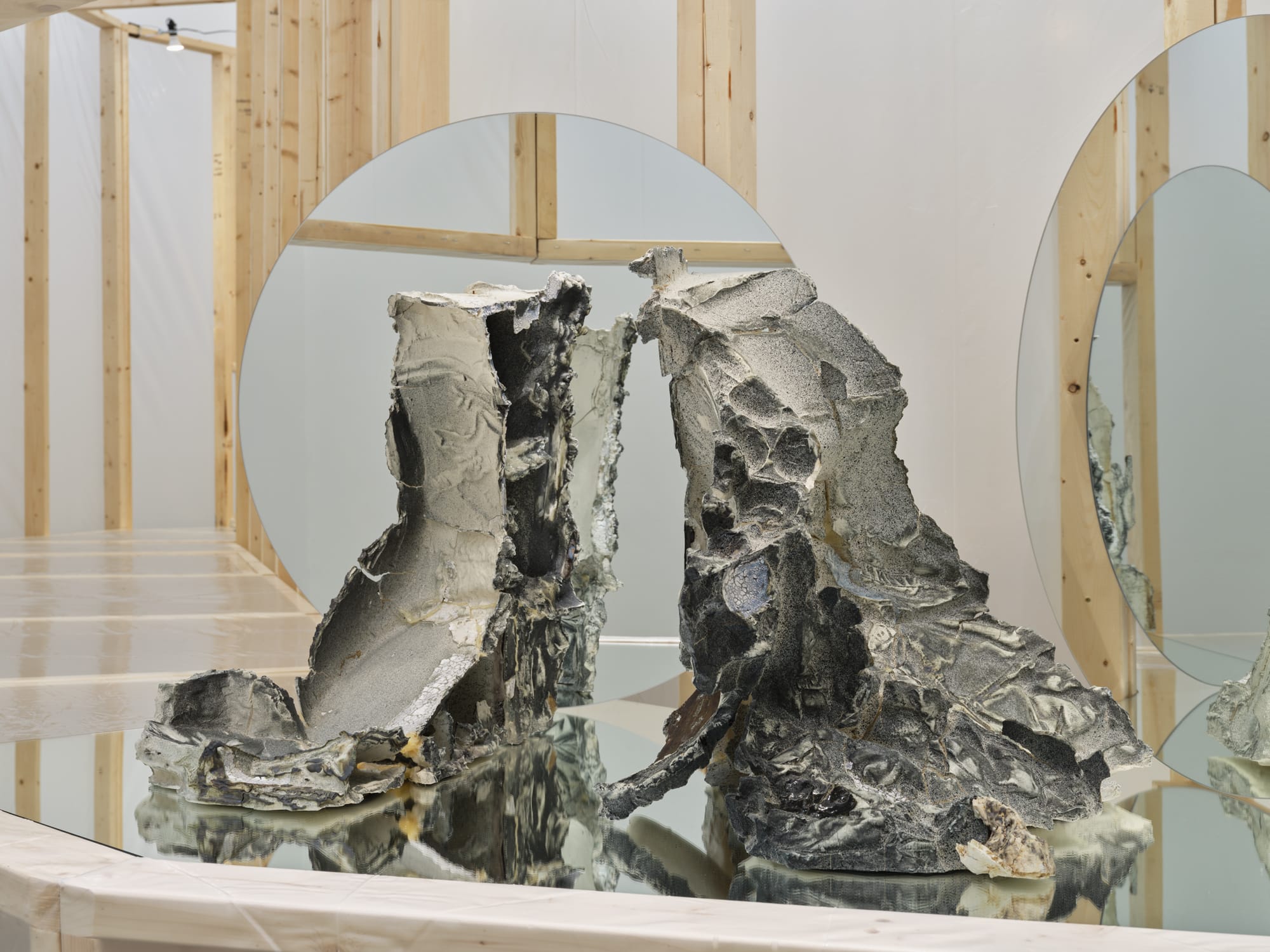 They were calling me from the desk — “the admin table,” Chew dubs it — where they also edit, send emails, and hold meetings, even when it’s just the three of them. The layout of the other room changes depending on the project. Right now, it’s a ceramics and sculpture-making studio, in preparation for their Amant show, for which they invited 13 other artists to create tiles mounted together on an armature; those artists typically come in one or a couple at a time, given the 600-square-foot size. None of those collaborating artists identify as ceramicists, Nguyen said.