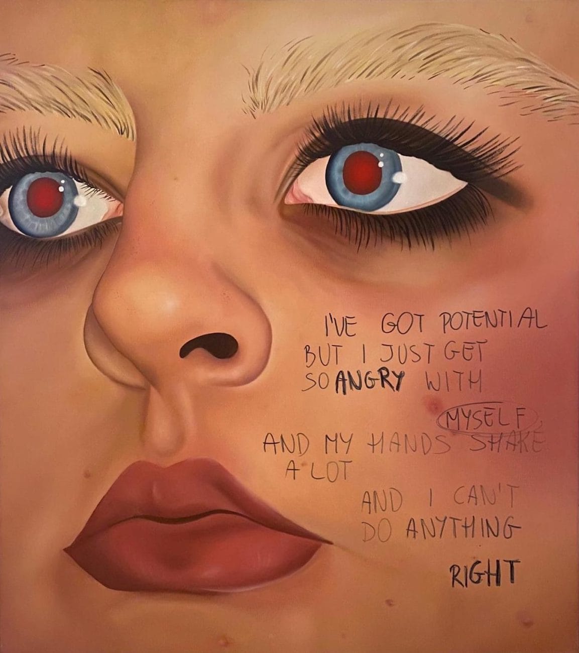 Adam Kozicki, “Make It Fucking Quicker” (2022), acrylic, ink, and airbrush on canvas