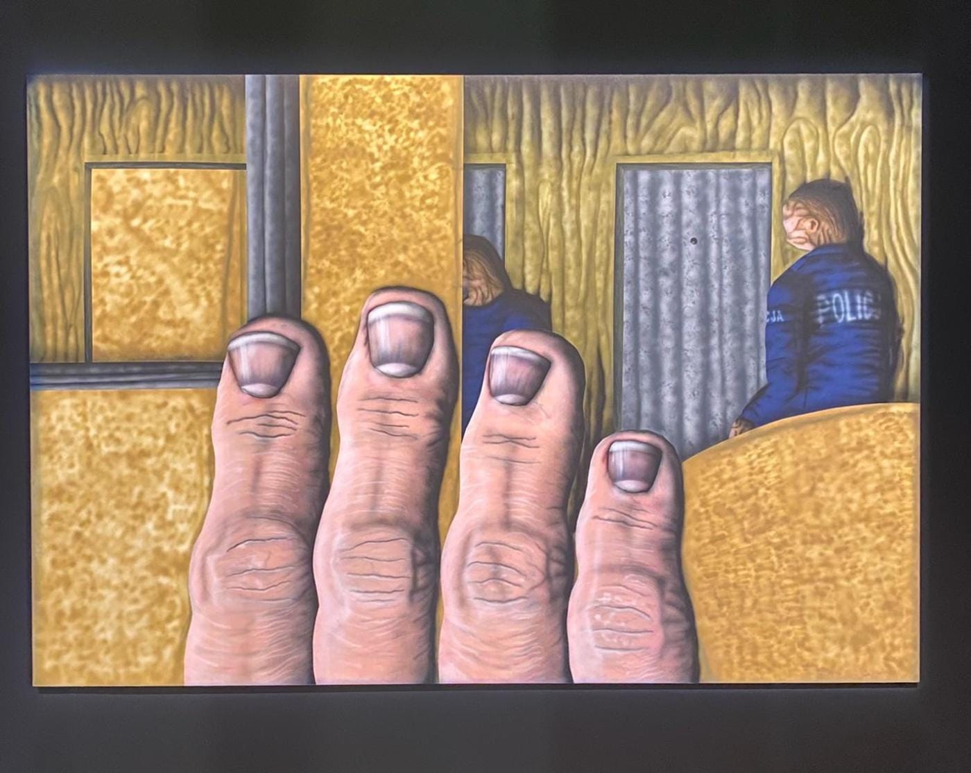 But the exhibition’s tendency toward messiness adequately captures the pressures that a younger generation of Polish artists face with an increasingly oppressive and Eurosceptic government. In most cases, the artists tackle topics head-on: the vulnerability of the self (Kornel Leśniak and Patryk Różycki); queer identities and gender stereotypes (Kacper Szalecki and Sebastian Winkler); institutions of oppression (Adam Kozicki and Ala Savashevich); our bodies’ relation to virtual/digital realities (Eternal Engine, Martyna Miller); and folklore, mythology, and the role of the absurd in everyday life (Cyryl Polaczek and Karolina Konopka).
