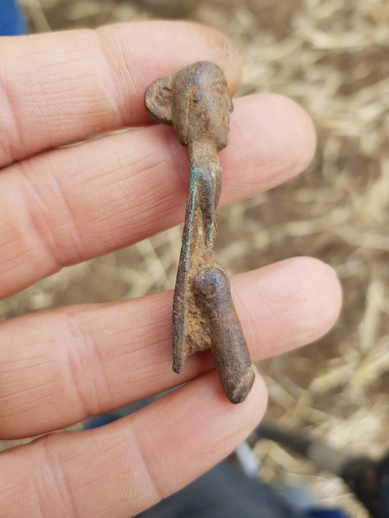 Shepheard found the figurine 10 inches deep (no pun intended) in the soil of a stubble field during a metal detecting rally last September. He initially mistook the two-inch object as a split pin until closer inspection revealed that it was a figurine of a nude man with a disproportionately large penis on a hinge component for up-and-down movement.