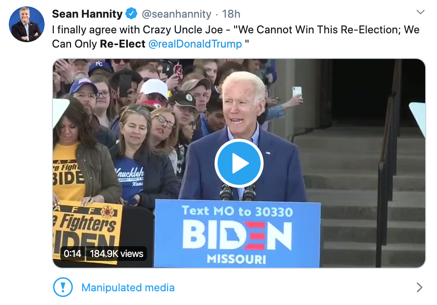 Twitter Labels Fake Video of Joe Biden as “Manipulated Content”