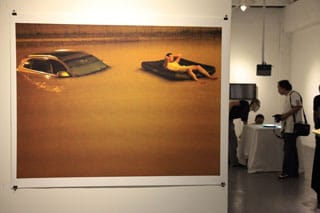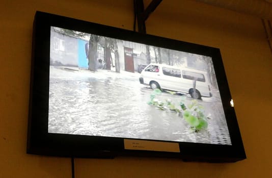 That day, those videos were never turned on, while all the other works were left untouched. Among them was Sun Shaokun’s graphic video recording of the hours following the flood that had hit Beijing in August because of the heavy rains, showing the floating corpse of a young woman. The following day, all videos except Ai Weiwei’s were turned on. During the following week, the videos remained on but the labels with the names of the artists and the title of the works disappeared. The following weekend, all the video works were on, although some had been changed position and placed on a different wall, and others were missing the name of the artist.