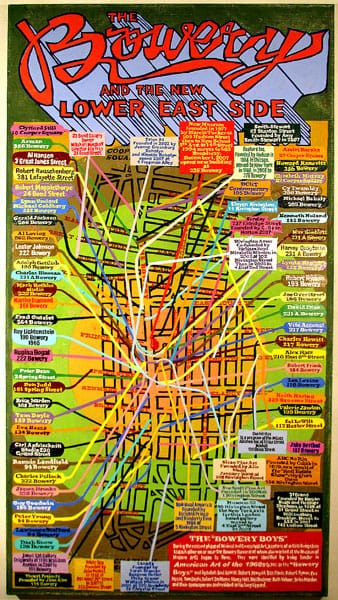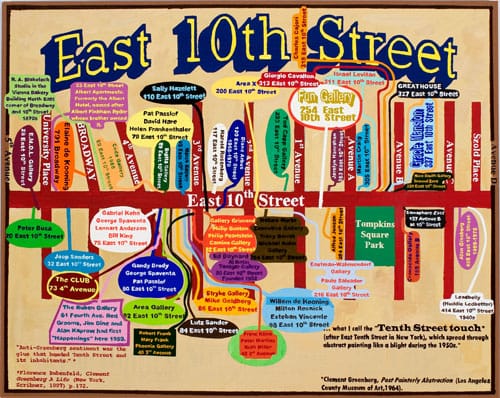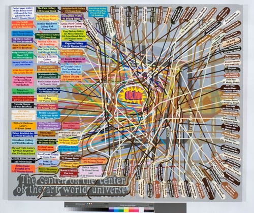 Loren Munk’s Location, Location, Location, Mapping the New York Art World at Lesley Heller Gallery (54 Orchard Street, Lower East Side, Manhattan) continues until October 16.