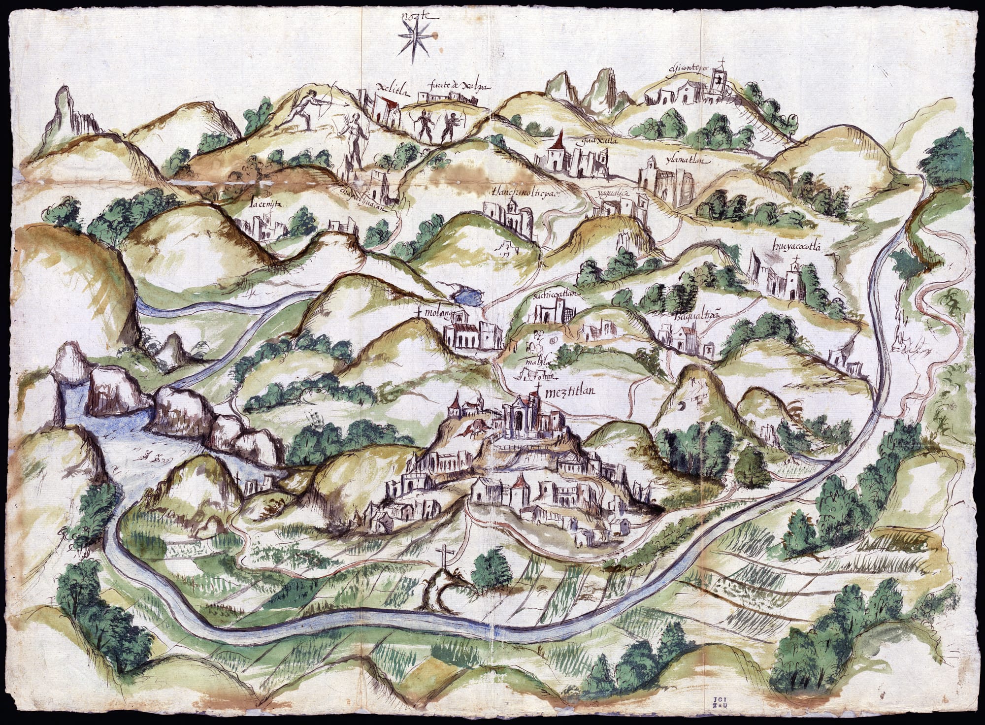 Maps drawn by Indigenous artists at the behest of the Spanish in the 16th century illustrate the amalgamation of visual traditions during the early years of contact between Indigenous groups and colonizers.