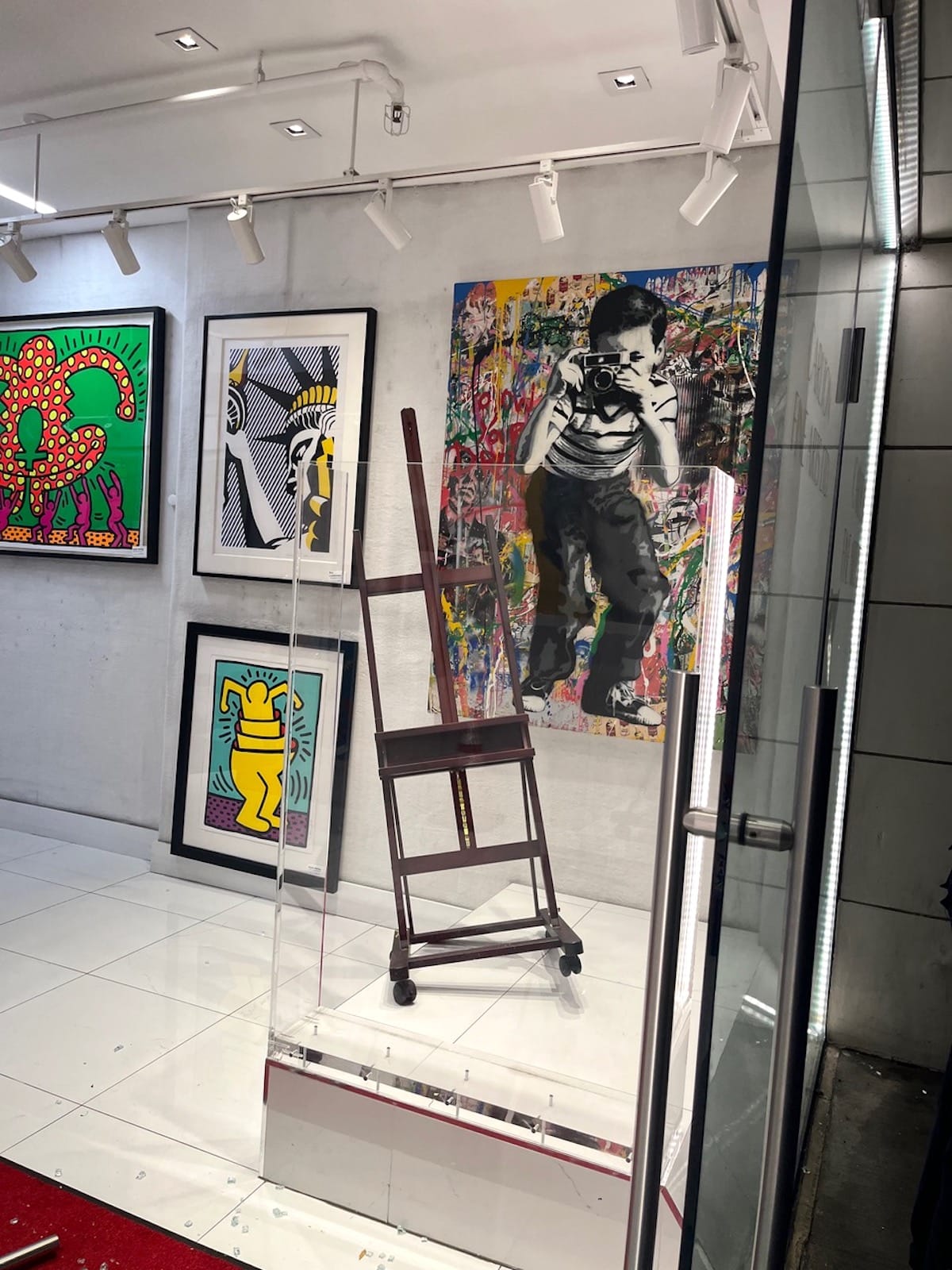 Speaking to Hyperallergic over the phone, gallery owner Charles Saffati said the thieves attempted to sell the print in November. It’s still not clear why they took “Eve” out of the many other valuable pieces in the gallery, but Saffati was told that they tried to offload the work for far less than what the dealer estimates is its $100,000 value, pointing to the theft as a smash-and-grab and not a planned burglary. (Auction records show other editions of the same work having sold for far less.) In photos taken by Saffati after the break-in, glass can be seen at the entrance to the gallery, with the easel on which the print was displayed sitting askew on a window platform.