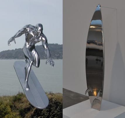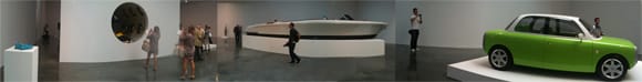 But beside a rather unremarkable boat there is a very stunning surfboard that made me want to learn to surf, “Nickel Surfer” (2006). Part futuristic mirror, part pop culture icon (anyone who has read Silver Surfer comics will understand), the object made a somewhat compelling case for a consideration of design as art since functionality seemed beside the point. In fact, I felt so confused by this totem of perfectly formed nickel — it is “grown” nickel I am told — that I felt the need to ask Newson if it was indeed a real-life usable object since it didn’t resemble any surfboard I had ever seen. He assured me it was, it was designed for 50-foot waves, and he even referred me to a catalogue that illustrated the fact. I was wow’d.