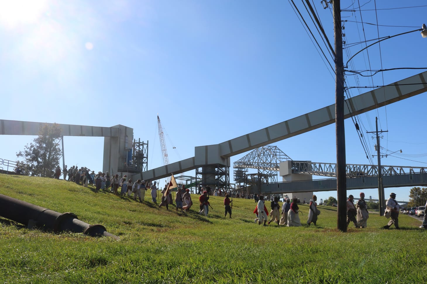 I began to grow concerned that I was witnessing something much like the annual Bloody Sunday commemoration in Selma, Alabama. Every year, to reenact the civil rights march across the Edmund Pettus Bridge, tens of thousands of people descend upon the one of the poorest cities in the country, a place battling public health crises rarely seen outside the Global South, to cross a bridge and enjoy photo opportunities. Politicians, celebrities, activists, and artists all make their way there, spending millions but in a way that ultimately doesn’t serve the people of Selma nearly as much as it should. Walking through Cancer Alley seeing working class and poor people watching the march go by, I couldn’t help but feel conflicted. Even though some may have participated, I wondered if this reenactment was really for them?