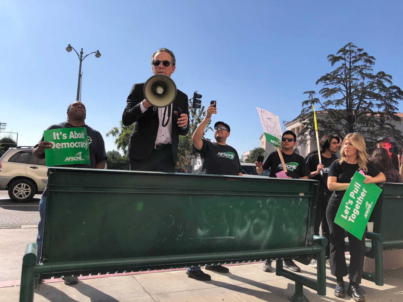 “The assembly member expresses his dissatisfaction and disappointment with the Marciano family for shutting these doors,” Josh Kirby, District Director for Assembly Member Richard Bloom, told the crowd. “Visitor services workers are the faces of the museum. Without them, there is no museum. They make it significant to us.”
