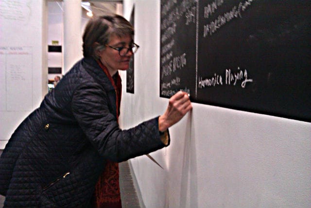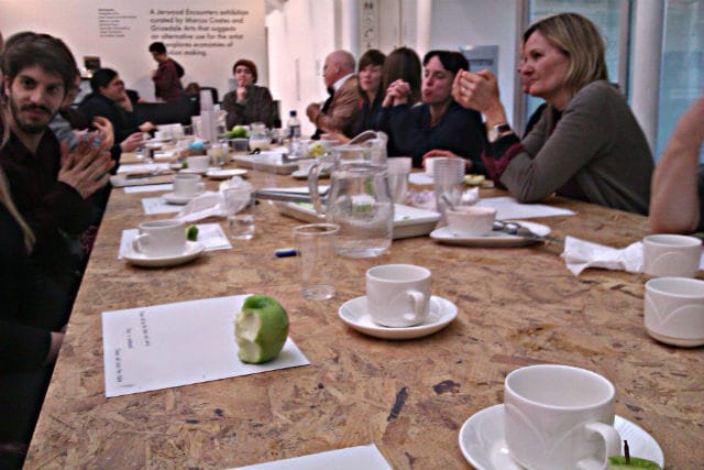 One week later I find myself back at the dining table on a mission to identify this project’s evolving clientele. But the proverbial Joe Public is nowhere to be seen. And as we tuck into our pasta, there are artists or arts-related folk on all sides. After running several background checks, things look up with an introduction to a visitor named Harry. Harry works for the fire brigade, but he turns out to be an artist too. Would other firefighters come down to see this show? “Yes, a few of the lads,” Harry claims. “They’re artists too.”