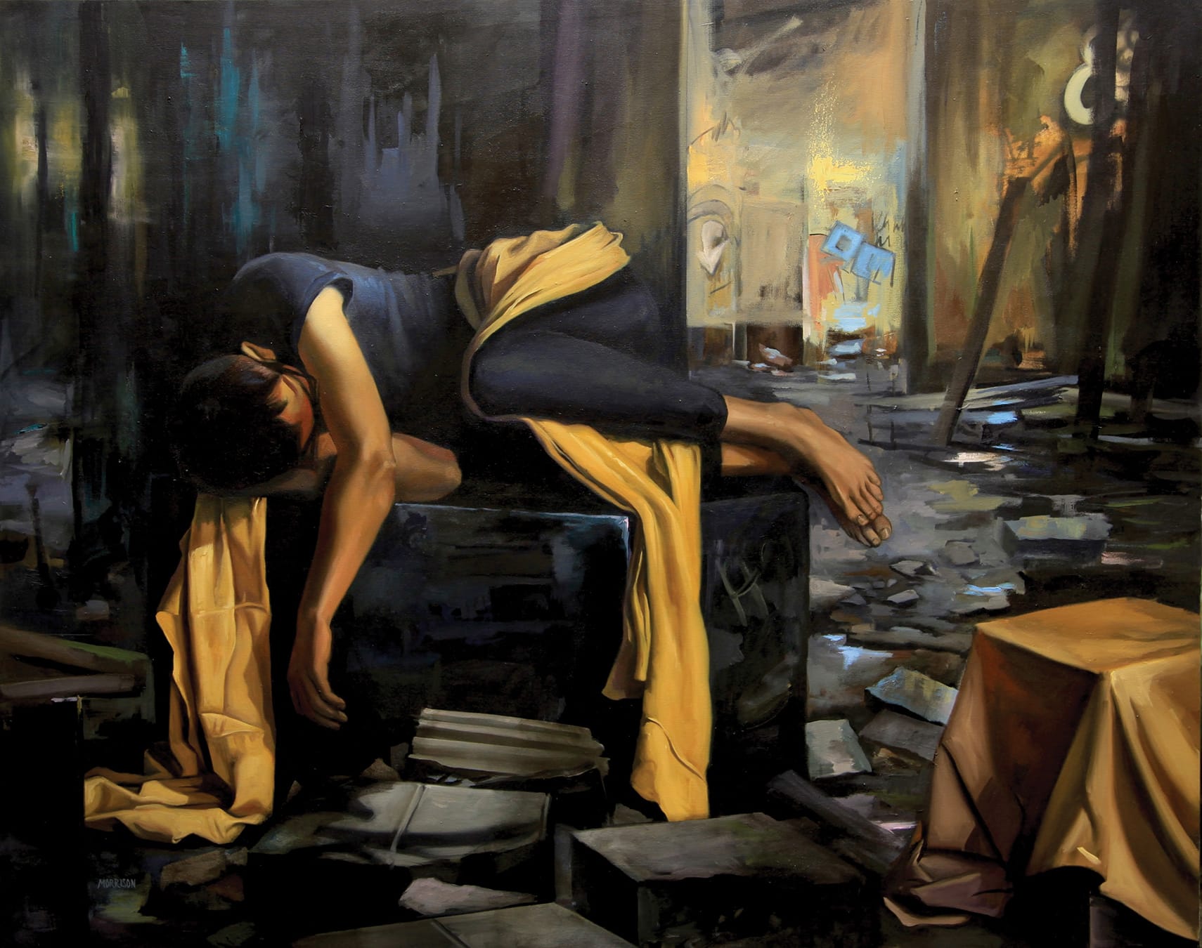 Woodward Gallery is proud to announce Margaret Morrison’s new solo exhibition, Paradigm Shift, on view at the Lyndon House Arts Center in Athens, Georgia, through September 1. In this narrative series of 10 large oil paintings, the artist aims to investigate Caravaggio’s use of theatrical light by depicting stages of faith-based, spiritual enlightenment, from awakening to transcendence. She has been represented by Woodward Gallery since 1995.