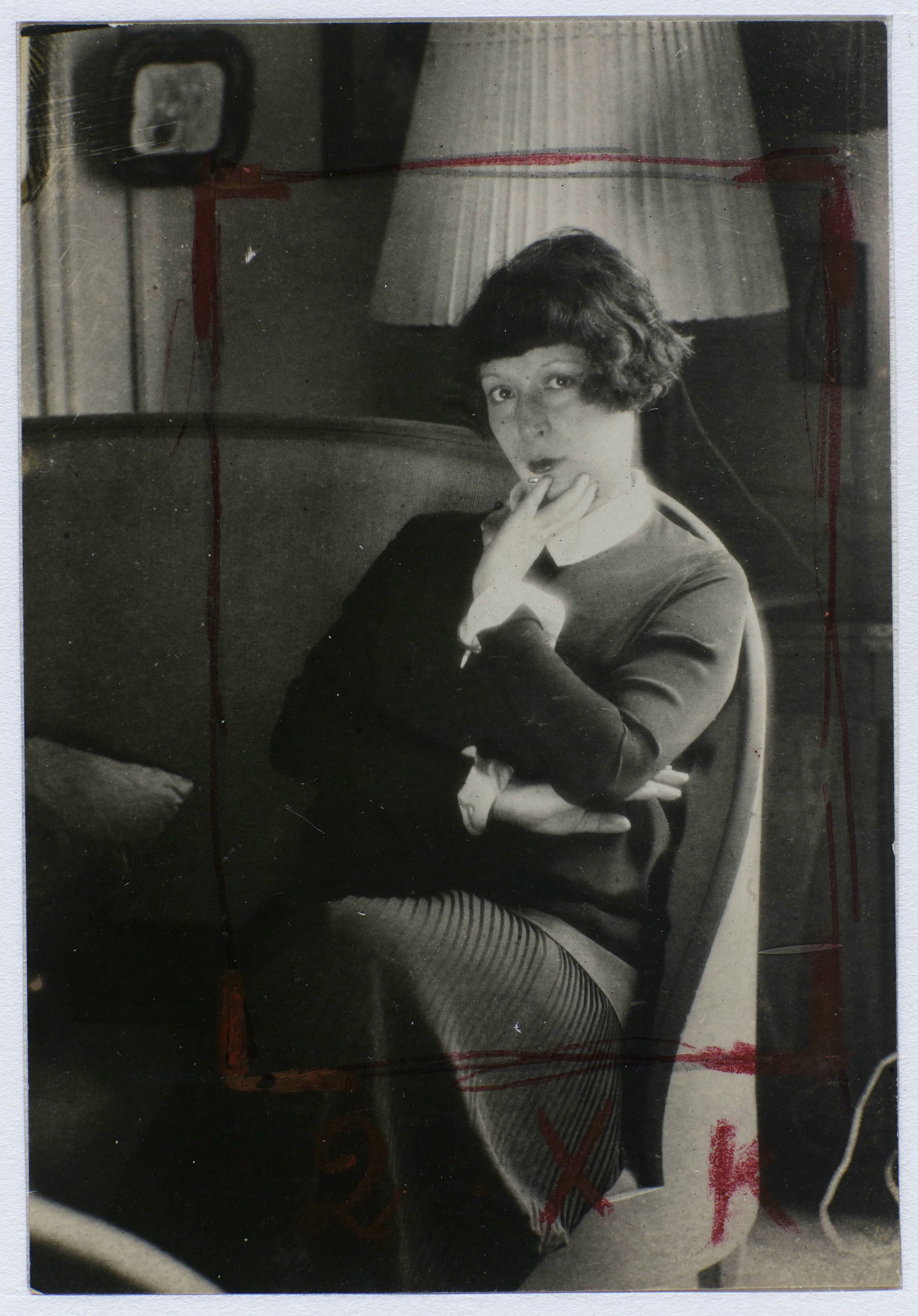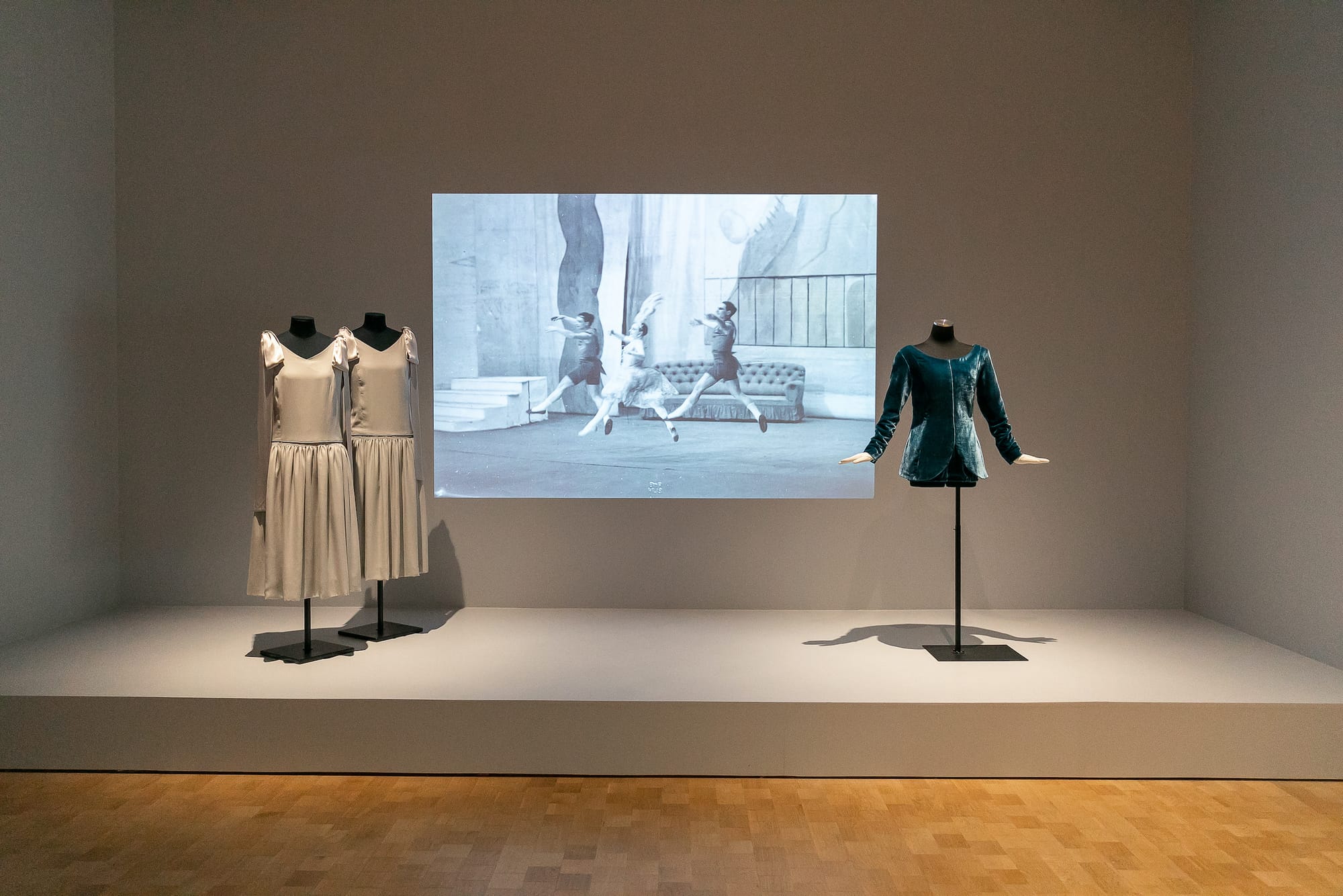 In 1923 ballet impresario Sergei Diaghilev commissioned Laurencin to design costumes and backdrops for the Ballets Russes production of Les Biches (The Does.) (In French, “doe” is also slang for lesbian.) The ballet features a dancer called The Garçonne, clad in a form-fitting tunic of teal velvet, who excites the attention of the females in the corps de ballet. The women of the corps are old school, and wear floaty white dresses. A replica of the tunic, a hybrid of a military jacket and a minidress, is on view at the Barnes, accompanied by photos of the corps de ballet outfits. If the garçonne was the new woman, implied Laurencin, this was her uniform.