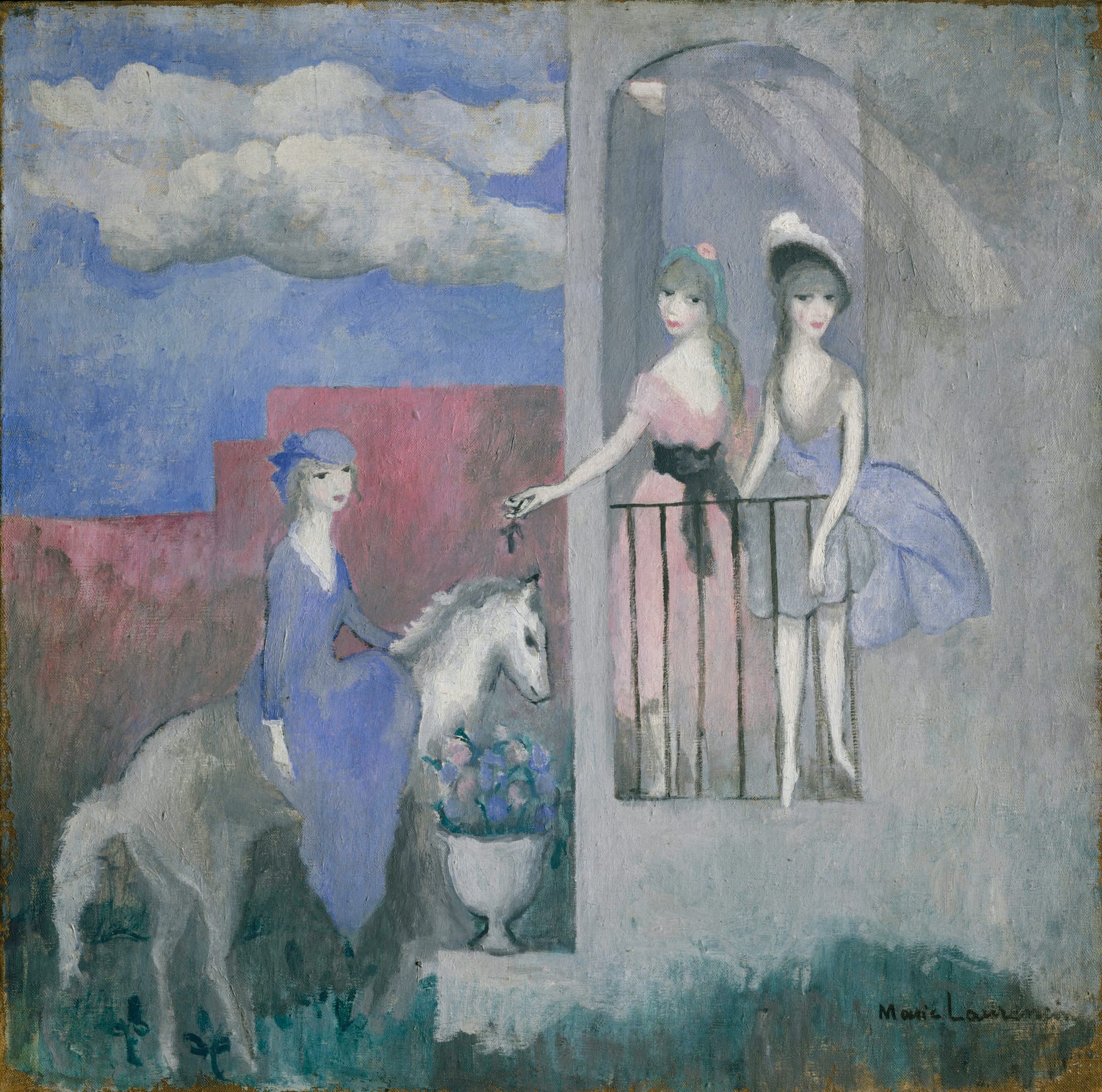 In 1913, Laurencin left Apollinaire. Perhaps she no longer wanted to be a poet’s muse, preferring to be her own woman. She waved goodbye to Cubism with the epigram, “Why should I paint dead fish, onions, and beer glasses? Girls are so much prettier.”
