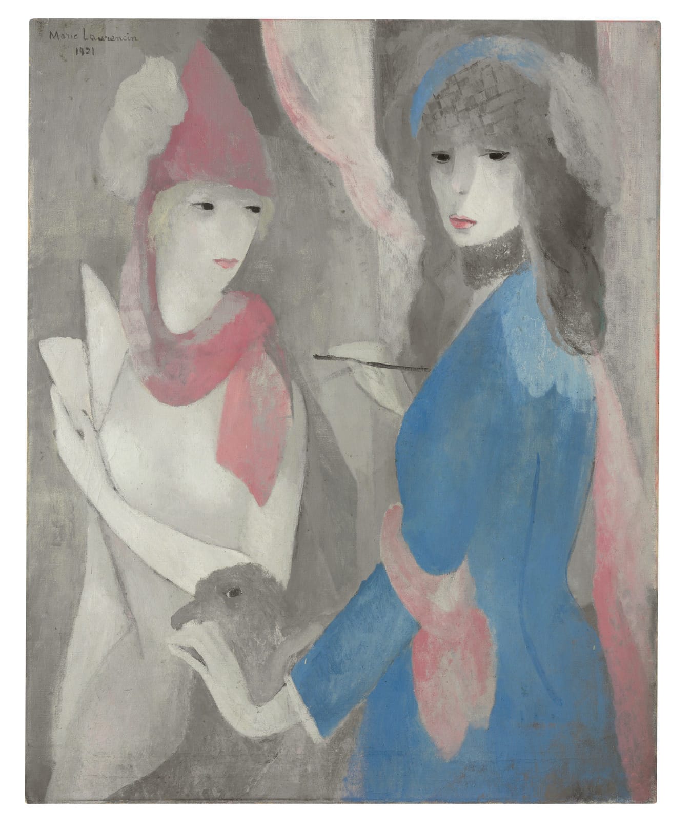 Laurencin came to painting through the applied arts. As a teenager, she drew decorative designs for her unwed mother, a seamstress, to use as templates for embroidery. In 1901, then 18, the budding artist studied porcelain painting at the Ecole de Sevres. Three times she took, and failed, the entrance exam to the Ecole des Beaux-Arts. In 1904 she enrolled at Académie Humbert, where she befriended future Cubist Georges Braque. In turn, he introduced her to future Dadaist Francis Picabia.