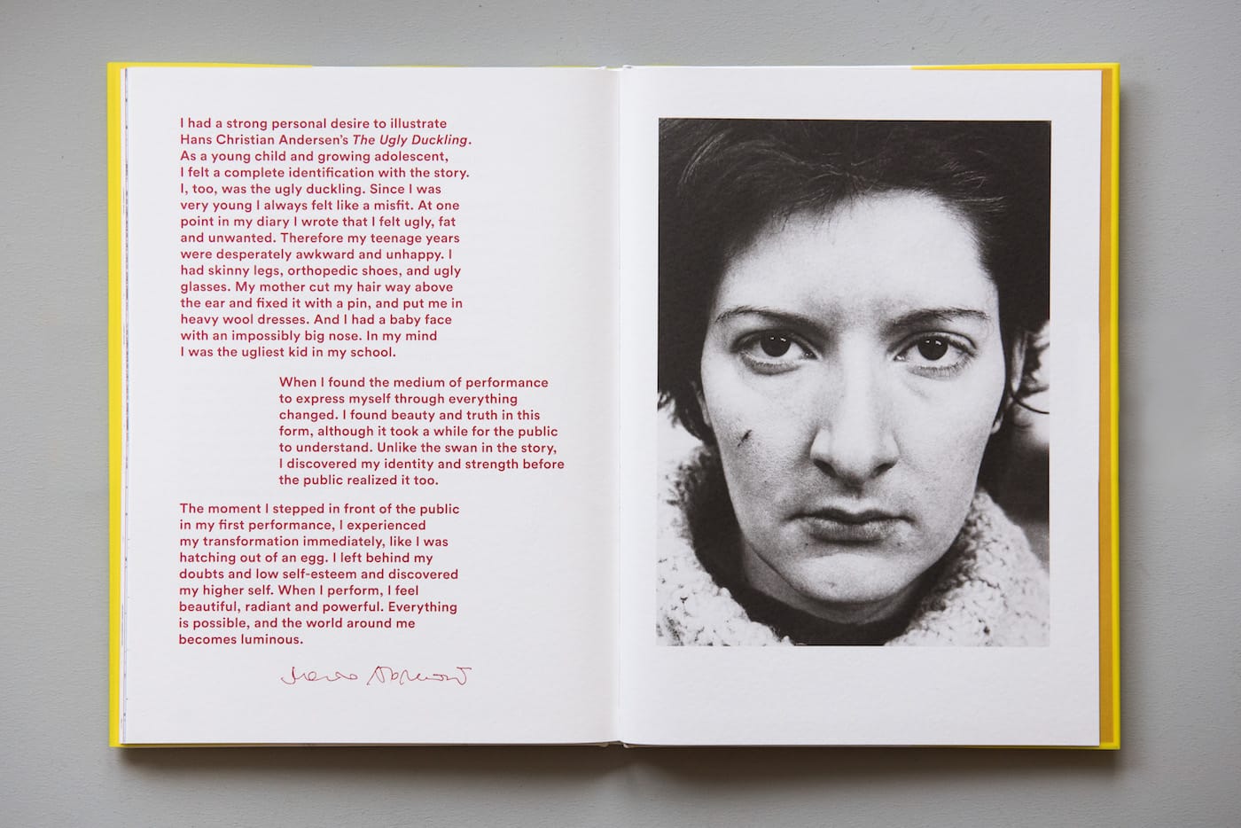 As she writes at the end of the book, Abramović felt the same way: “As a young child and growing adolescent, I felt a complete identification with the story. I, too, was the ugly duckling … My teenage years were desperately awkward and unhappy … I had a baby face with an impossibly big nose.” She goes on to say that “Unlike the swan in the story, I discovered my identity and strength before the public realized it too … the moment I stepped in front of the public in my first performance, I experienced my transformation immediately, like I was hatching out of an egg.”