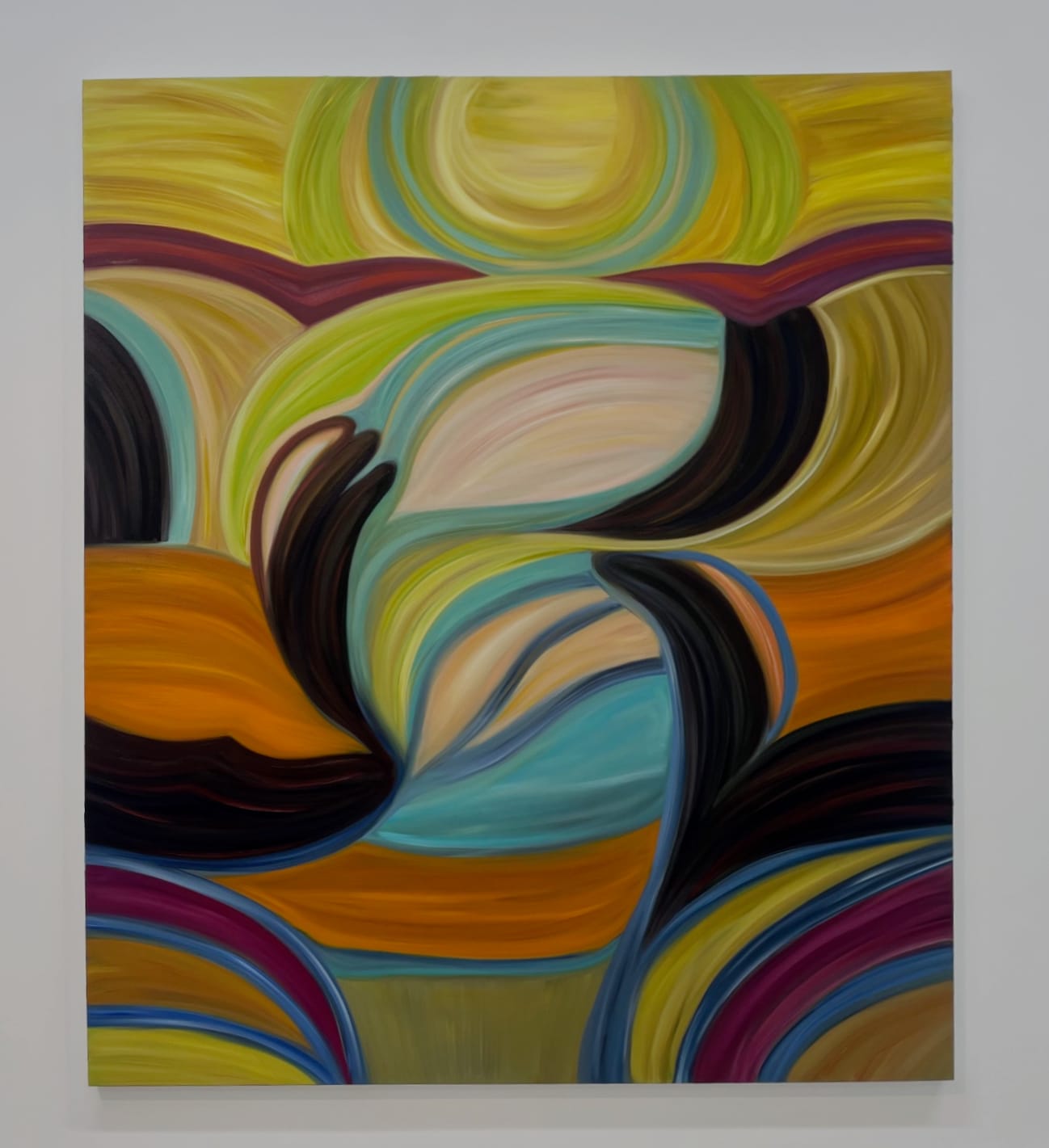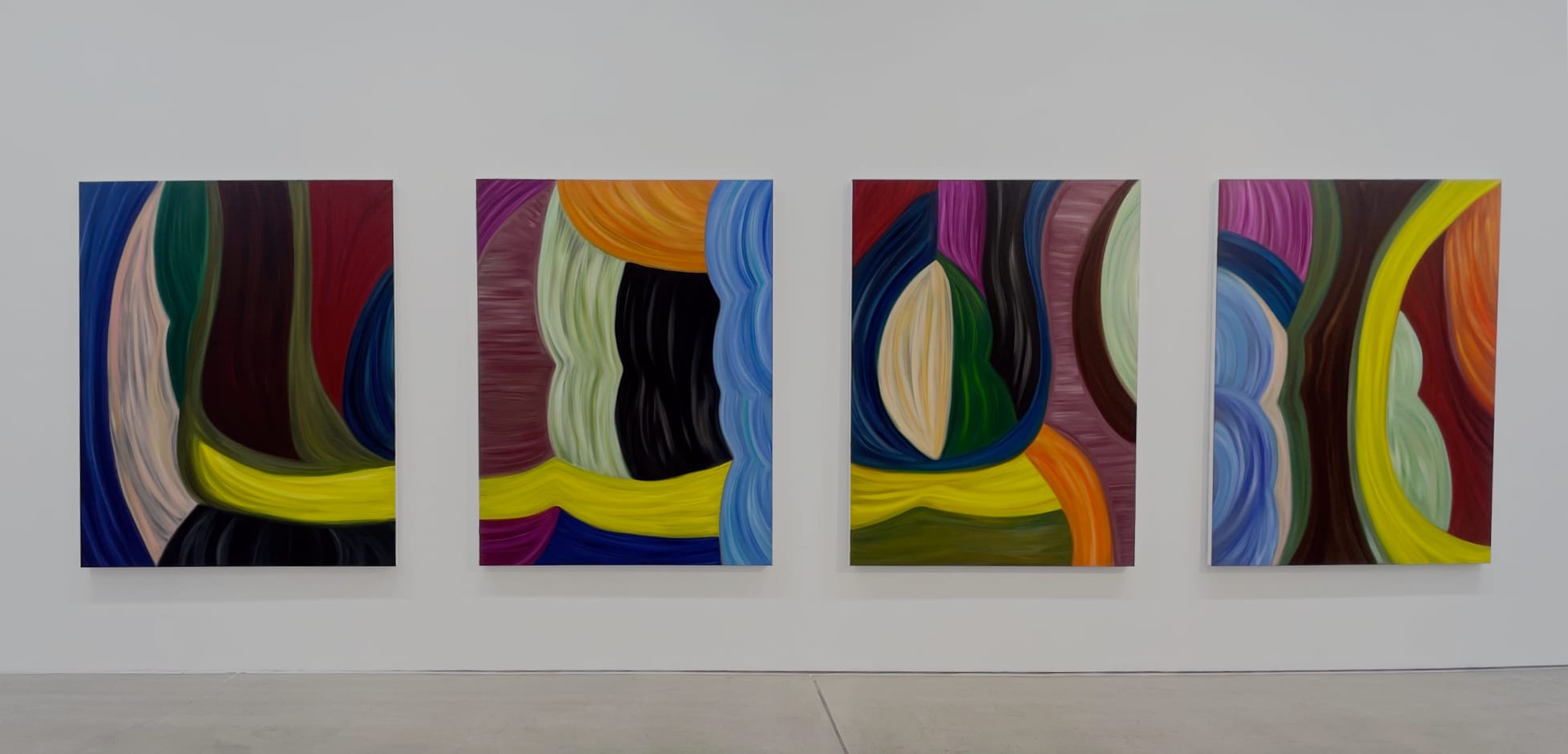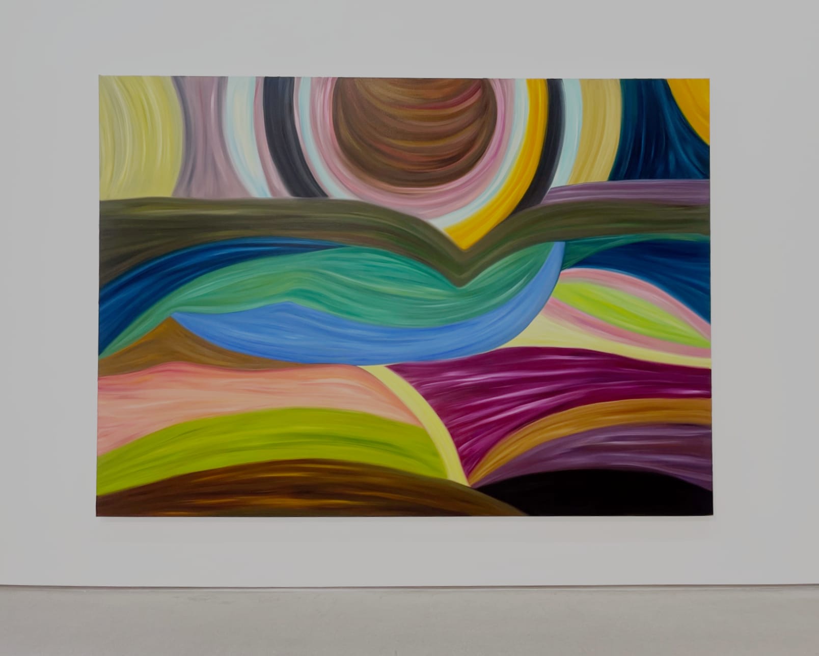 LEIPZIG, Germany — My first impression of Marina Perez Simão’s recent oil paintings — 17 of which are shown at G2 in Leipzig, in the artist's first institutional solo exhibition in Germany — was how remarkably grounded they felt. For all their evident moltenness, with their billowy shapes suggesting undulating landscapes, these compositions also conveyed a strong, even voluptuous sense of mass. In her works, all painted in 2024, the artist systematizes nature’s motifs and distills them into interlocking volumes and color bands, making them as cerebral as they are sensuous.