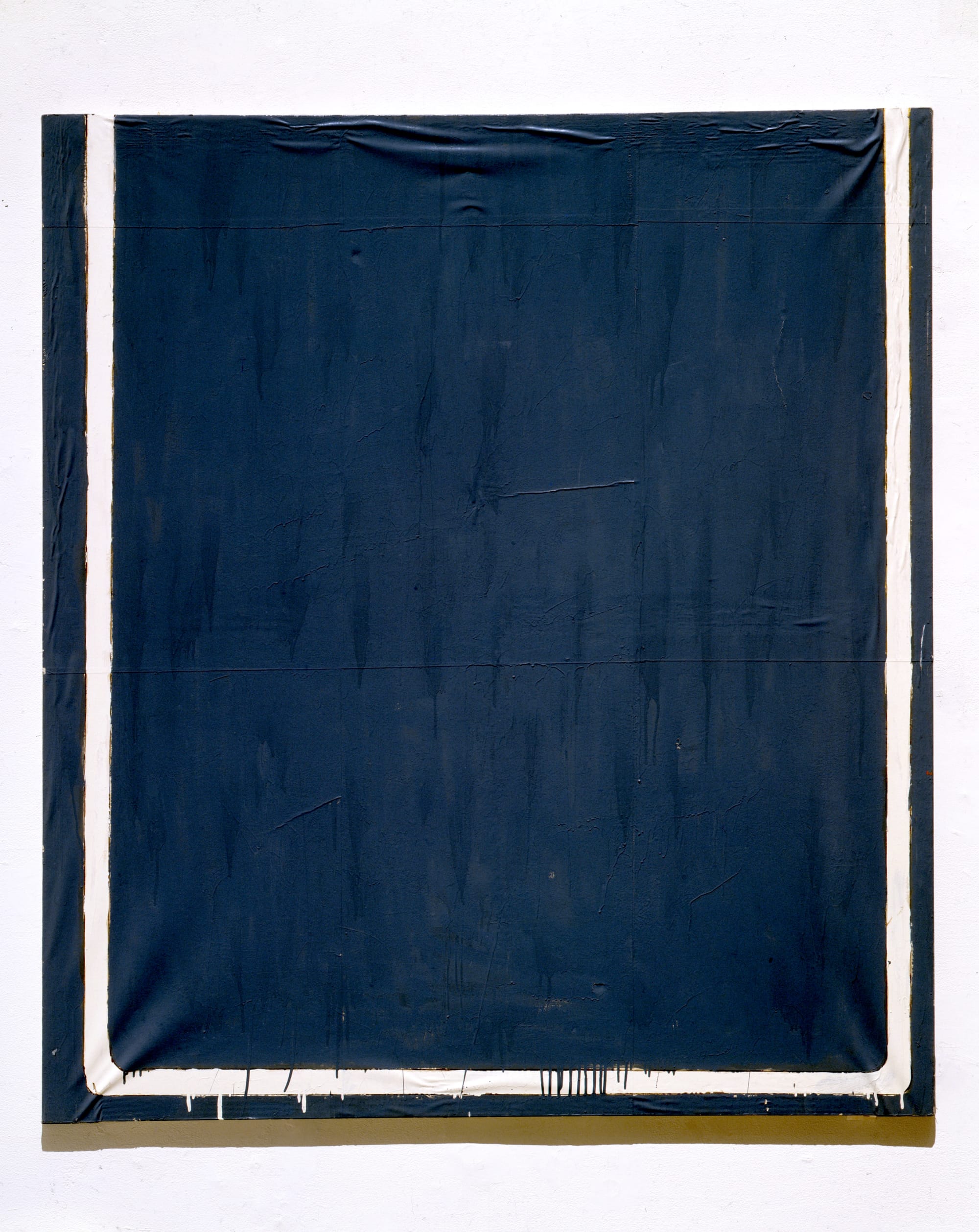 Schifano’s monochrome paintings are done in enamel on paper affixed to canvas. In these paintings (dated 1960–62), it is clear that, unlike his countryman Piero Manzoni, born one year earlier, or Yves Klein, whose work he might have seen in Milan, where it was first exhibited in 1960, Schifano was not interested in rejecting the past, being ironic, or searching for transcendence. Rather, he was interested in connecting art to everyday life.