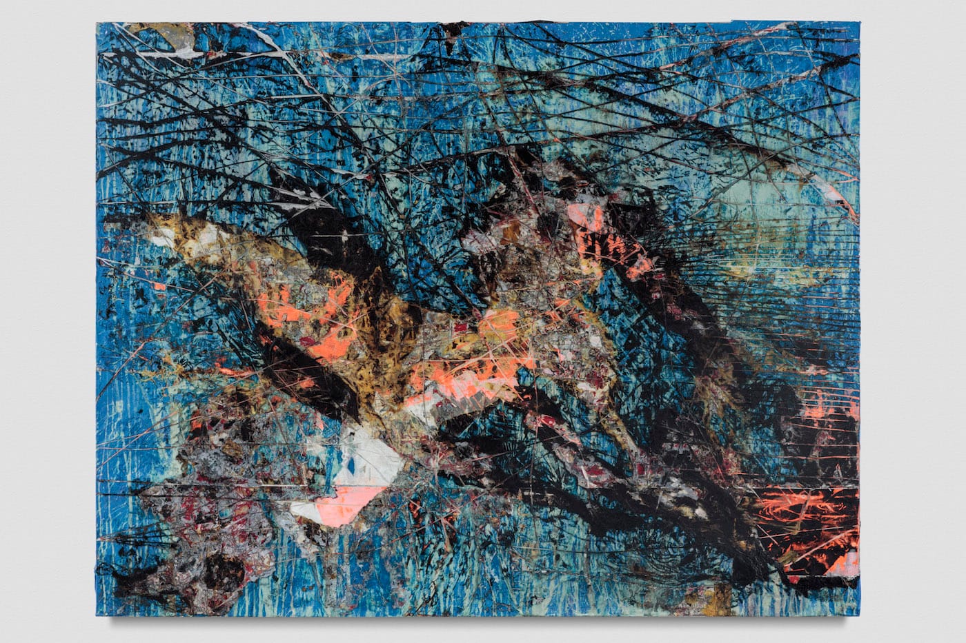 Mark Bradford, “Bird of Paradise” (2018), mixed media on canvas, 84 x 108 in (© Mark Bradford, courtesy the artist and Hauser & Wirth, photo by Joshua White)
