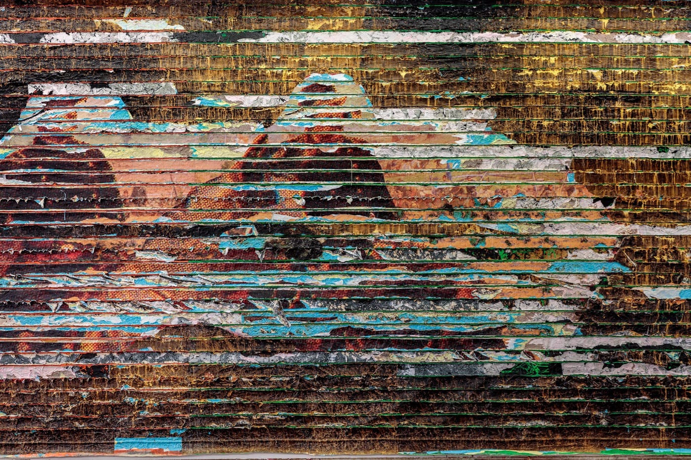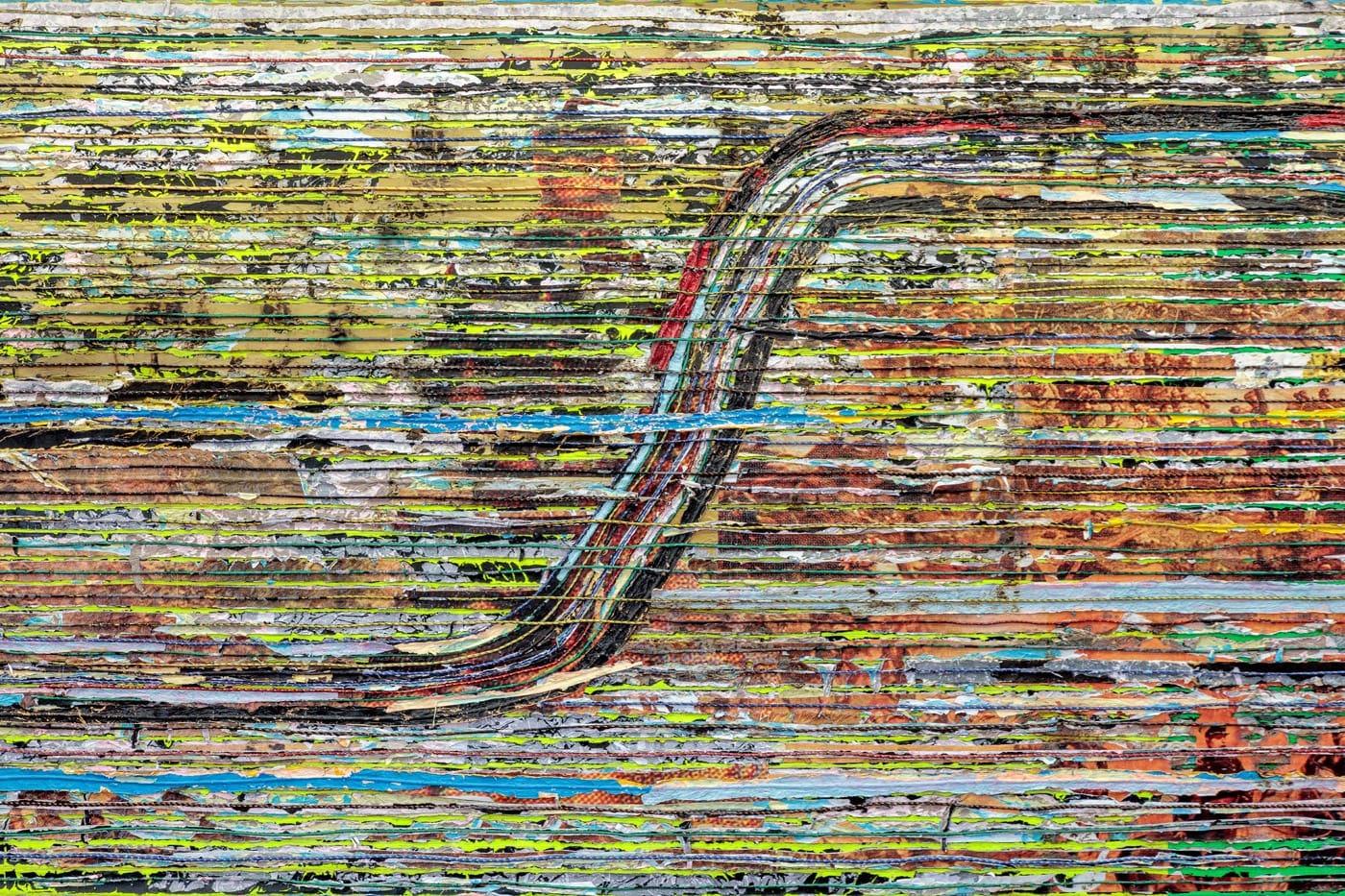 Bradford’s iteration of “Pickett’s Charge” directly contrasts Philipoteaux’s forced nobility, and shows us the destructive energy surrounding the Civil War. His version has alternating rows of multicolored rope that pulls and tears at dozens of layers of life-size paper reproductions of Philipoteaux’s imagery, such as with his panel “Two Men.” In this segment, the erasure of the subjects’ faces is a subtle jab at the narcissism of masculinity, especially when we consider that most of recorded American history was recounted by white men for white men, where women, children and minorities were at best an afterthought. The fact that the men depicted were Union soldiers (denoted by the dark blue of their uniforms) further emphasizes how the winning side of the war had only helped to uphold the system of white supremacy that was so brutally enforced in the Confederacy.