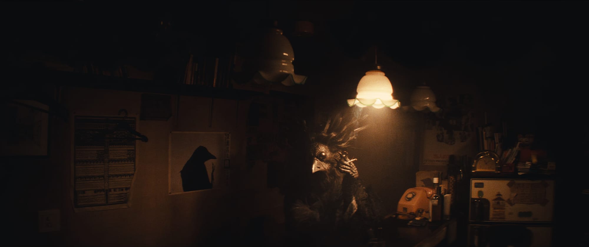 I don’t mean an actual talking bird. Instead, a young Fukase, locked in his father’s photo studio as punishment for daring to apply to art school, begins seeing a top-hatted man-bird in a gothic raven costume. Wearing a beaky mask and all, and speaking in Spanish-accented English, this ridiculous character follows Fukase throughout the film, whispering sweet nothings that bid him to act on reckless and violent impulses.