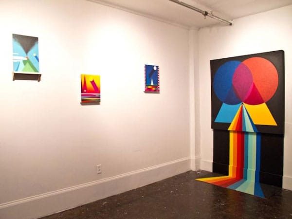 Their current exhibition, Something about Everything about Something, is Mark Warren Jacques’s first solo exhibition with the gallery. I met Mark a year ago when he visited New York to work on a project with then Williamsburg, Brooklyn-based Cinders Gallery. Perhaps it’s fitting that on my first visit with the artist we spent half of a day in the Egyptian wing at the Met and the other half drinking Tecate on the Lower East Side. His paintings are equal parts pop and mysticism; they linger between the monastic, the psychedelic and party time. A Portland-based artist, his works assert themselves with a clearly defined West Coast swagger. They beam light straight into your head, they knock you down with colorful brilliance only to offer you a leg up and a wholehearted wink.