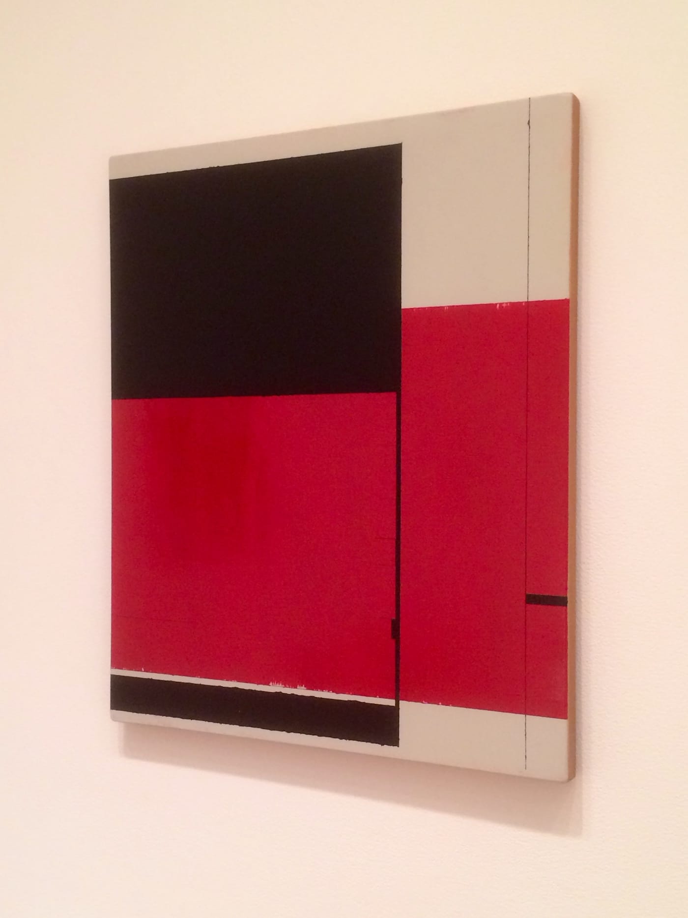 The second room of the gallery contains seven paintings that Williams completed before his retirement from MOMA. These paintings, after the austere meditational quality of the first room, turn up the volume with their reds, muted yellows, and purplish-blacks. The red in “Untitled” (2011) exudes the polish of Japanese enameling. The sheen is so strong it’s possible to see your reflection.