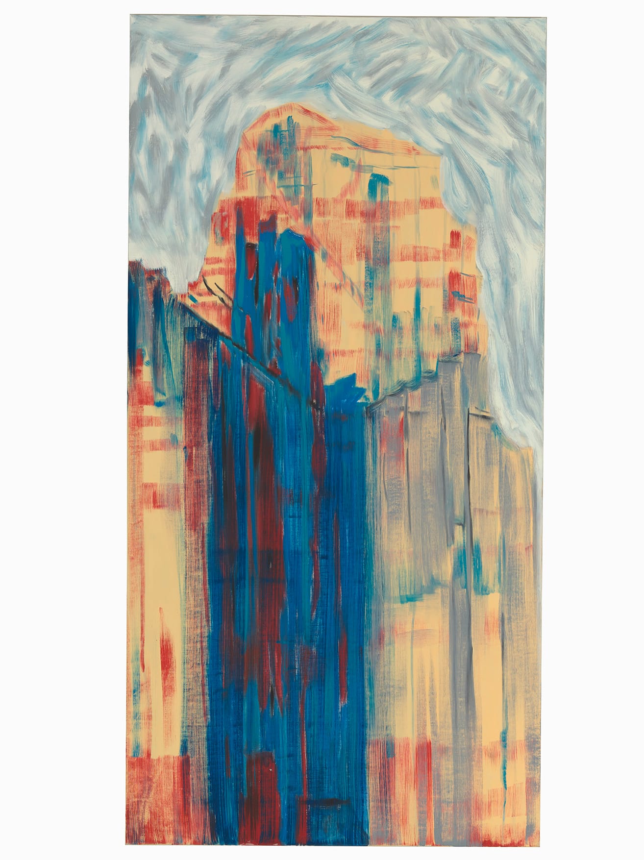 When I saw her paintings of buildings, I thought of the opening stanza of Frank O’ Hara’s love poem “Steps”: