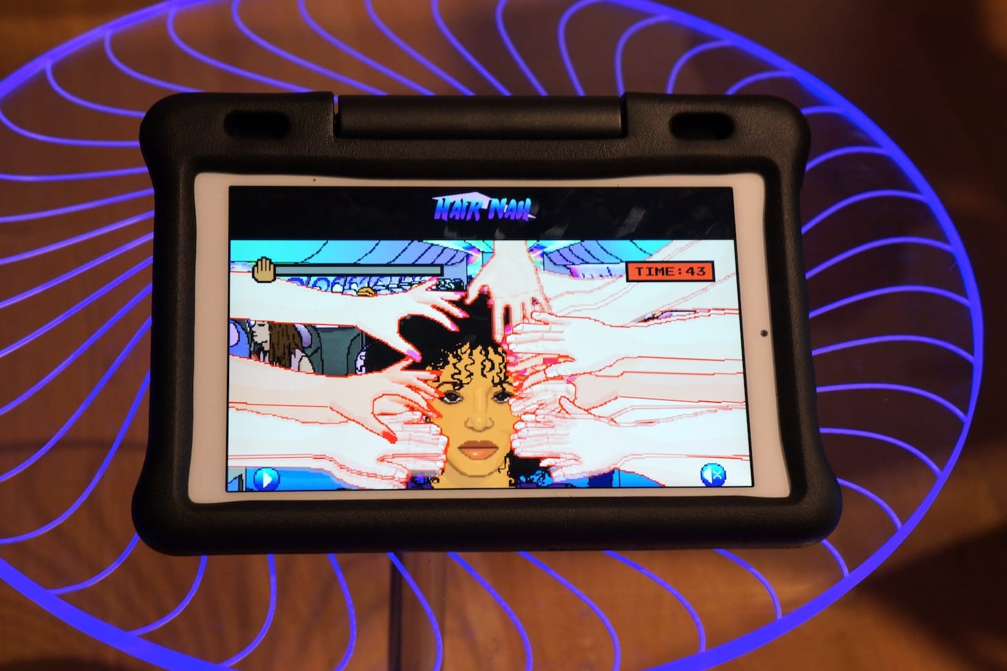People of all ages and descriptions tried their hands at games, and in the half-light of the room, I caught a glimpse of children that couldn’t have been much older than three or four, operating at least two different games on their own.