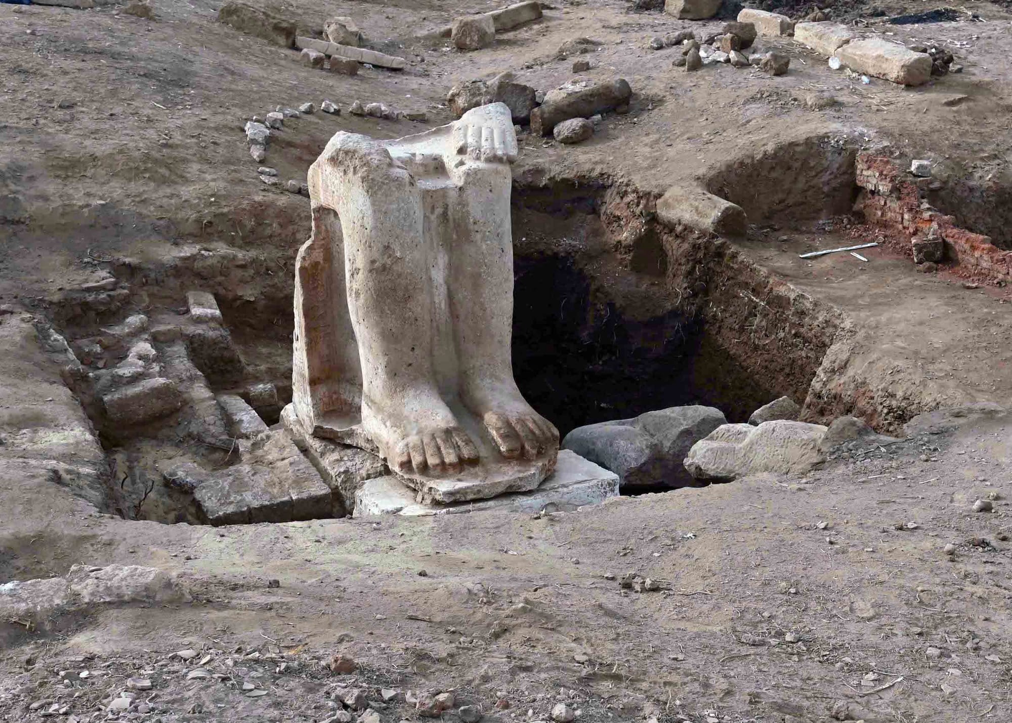 While the newly uncovered half measures roughly 12 and a half feet in height, researchers estimate that the statue in its entirety may reach as tall as 23 feet.