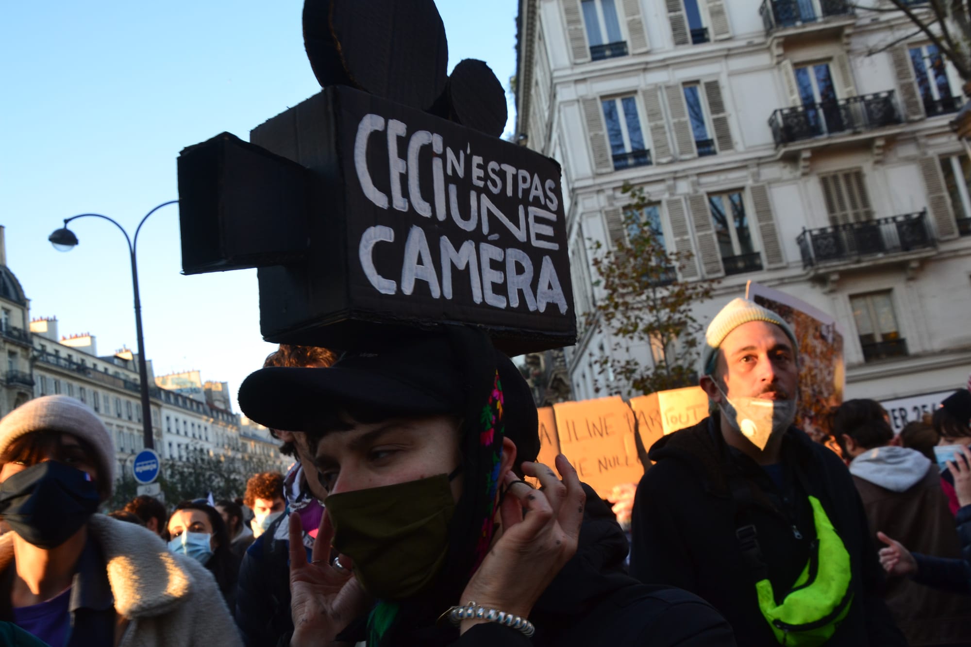 A protest in Paris on November 28, 2020 against a proposed security bill which would ban filming or photographing police officers (Jeanne Menjoulet/Flickr)
