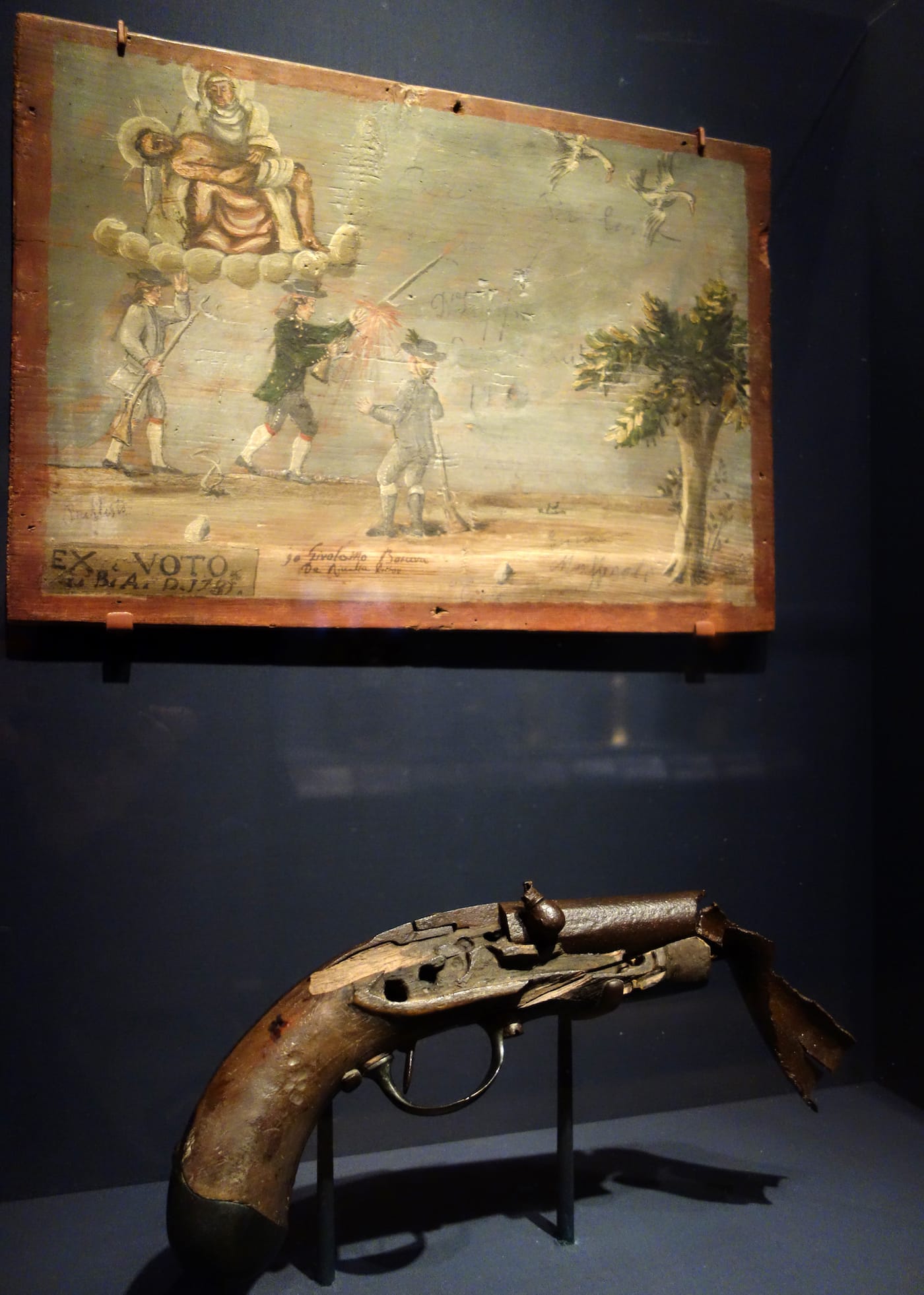 One large 1777 ex-voto oil painting from Mexico, previously covered by Claire Voon for Hyperallergic, graphically shows the mastectomy of Doña Josefa Peres Maldonado. Health is the overriding subject, particularly for interior ailments not easily treated in early medicine. Similarly, the numerous sculpted babies, sometimes shaped from wax to match the exact size and weight of an infant, reveal anxieties around childbirth, which for women could be deadly.