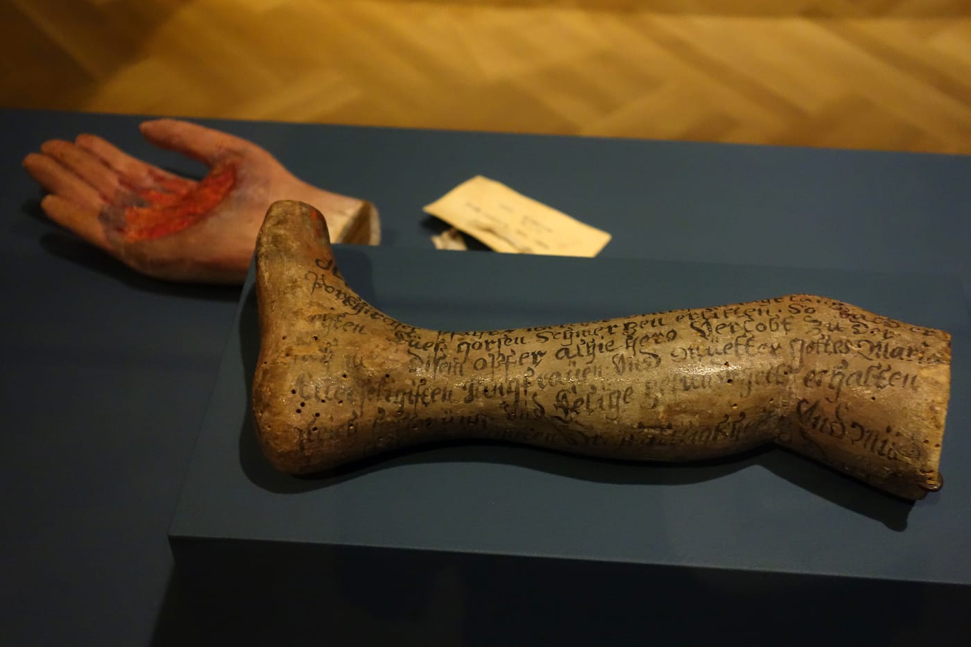 Between the 3rd and 2nd centuries BCE, someone buried a terracotta female deity in northern India, an action of hope for the fertility of the earth. In the late 5th century BCE, a woman left a marble tribute at a Greek sanctuary to thank a goddess for helping her survive childbirth; its sculpted scene portrays the new mother collapsed in a chair, a nurse and the goddess offering solace. In the 19th century, lungs were carved from wood and suspended in a sacred space in Bavaria, perhaps asking for some intervention in the rampant spread of tuberculosis. In 1995, a pair of well-worn prosthetic legs were placed at the Vietnam Veterans Memorial in Washington, DC.