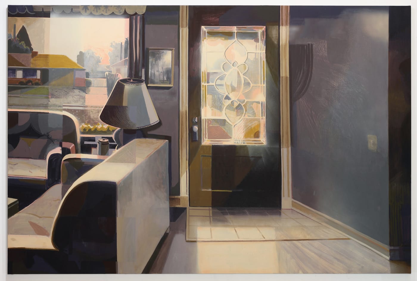 Bollinger’s attention to quotidian details and Middle American atmospherics is extraordinary. He is interested in the different kinds of light that fill this world – the pale green light of a computer’s screensaver, the subdued, dusty pink light of morning, the gray light cast by a television watched by someone alone in the dark. On the screen, we see pale green tears falling. Emotions are what other people have. Bollinger combines dispassionate observation and extreme tenderness towards his subjects, an unlikely combination that gives his works an emotional depth few of his figurative contemporaries are able to attain.