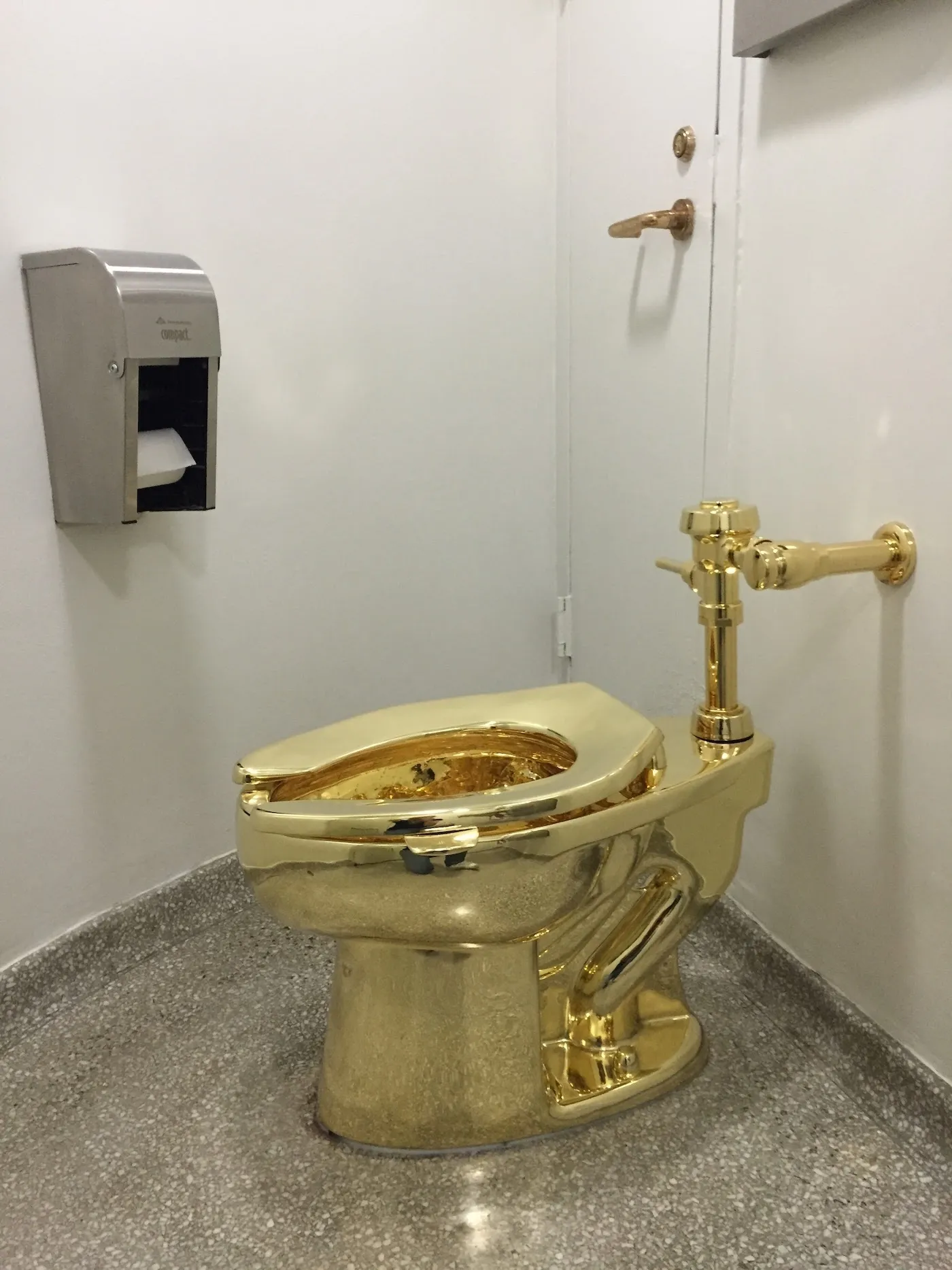 “America” was consigned to Sotheby’s by hedge fund manager and owner of the New York Mets, Steve Cohen; the piece ultimately sold for $12.1 million (including fees) to the entertainment company Ripley’s Believe It or Not!. Cohen is the 30th-richest man in the United States and possesses an art collection valued at a billion dollars, including pieces by Jackson Pollock, Jeff Koons, and Willem de Kooning. Having previously been charged with racketeering and insider trading, Cohen also rather predictably donated a million dollars to the inauguration of Donald Trump, a figure who frequently identified with the concept of a golden toilet in jokes. One wonders what Cohen did with the piece. Did he admire the sheen of yellow that reflected off the sculpture? Did he appreciate the return on his initial investment after buying it for an undisclosed sum in 2017? Did Steve Cohen shit in “America”?