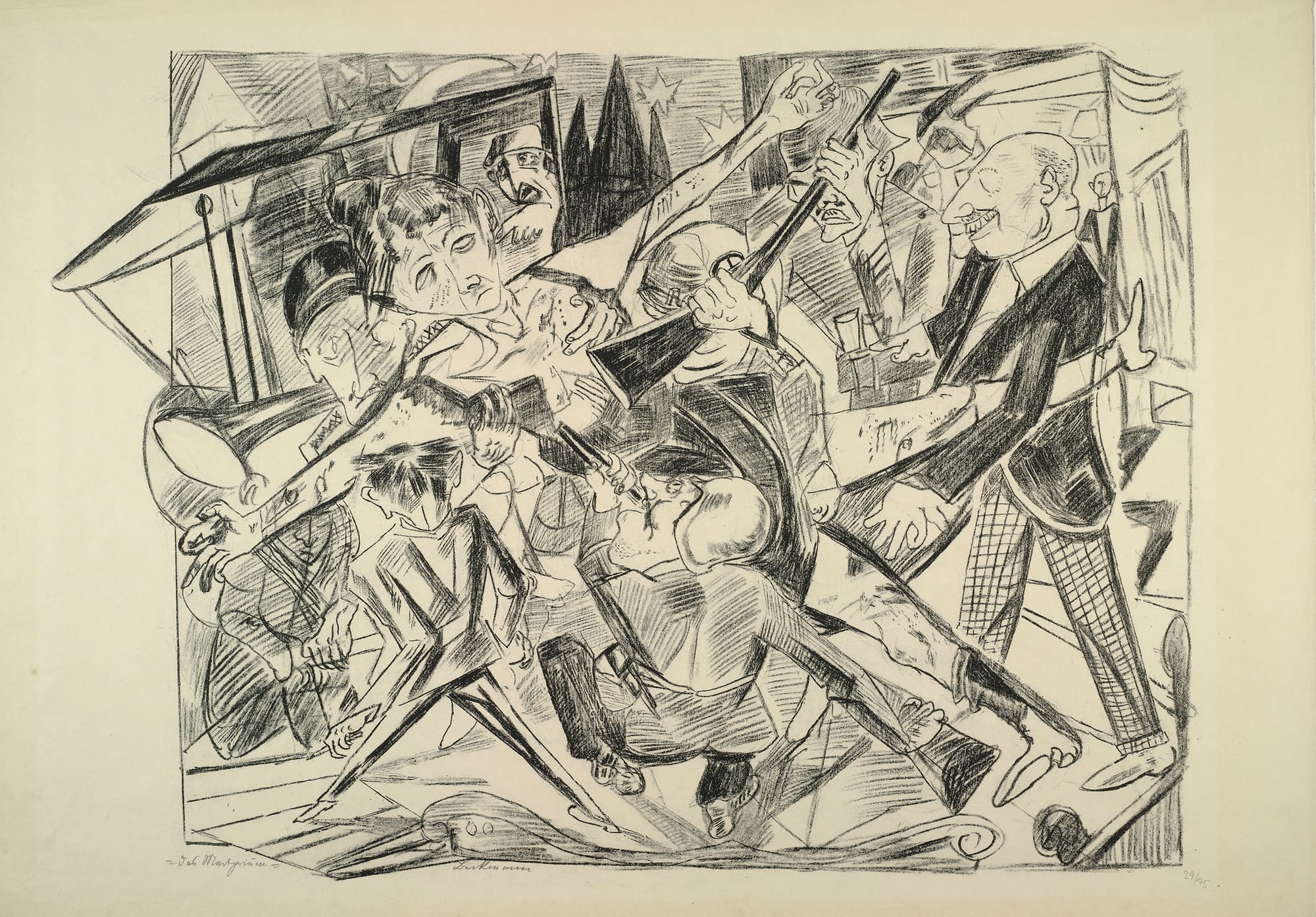 In the years prior to World War I, a very young Max Beckmann (1884–1950) established himself as the darling of the Berlin Secession, the proto-modernist art movement that declared its independence from the academic Association of Berlin Artists in 1898. But there was a problem, and he knew it. Despite his public scraps defending the once-progressive styles of Symbolism, Realism, and Impressionism against a new crop of upstarts waving the banners of Fauvism, Primitivism, and Expressionism, Beckmann intuited that neither the epic narratives he aspired to paint nor the wobbly Impressionistic architecture he imposed on them were up to the pitch of the moment. By the time he volunteered as a medical orderly at the outbreak of World War I in 1914, he was at a dead end.