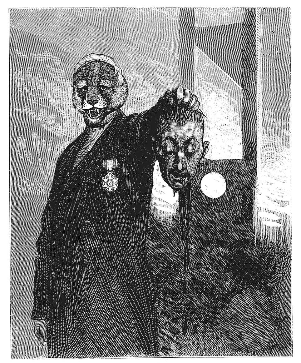 Perhaps Ernst has a message for our moment, too. Drawing back the stage curtains of the unconscious, he shows us a world where laws are flouted and norms are trashed, where senseless violence is rampant and the id has the upper hand. Is his absurdist horror show so different from Trump’s America, where a rage-tweeting troll sustained by fulsome praise and Diet Coke is our Ubu Roi? The severed heads casually dumped in the gutters of Ernst’s streets; the frantic-looking chap fleeing the scene with a severed limb strapped to his suitcase (“Open your bag, my good man,” the caption reads); the bearded gent tucking into his soup, oblivious to the roof collapsing around him: Ernst’s images rhyme with the moronic awfulness of our age. Ours is a time when neo-Nazis taunt liberal “snowflakes” by adopting Harambe, the gorilla killed at the Cincinnati Zoo, as an ironic mascot (“Dicks out for Harambe”); conspiracy-addled leftists swell the ranks of the 9/11 truther and anti-vaxxer brigades; and the far-right Twittersphere weaponizes memes like #PizzaGate to troll the “shitlib” media and enflame the lunatic fringe. “Those … who are merry sometimes turn their behinds toward the sky and cast their excrement in the face of other men,” proclaims the epigraph to A Week of Kindness‘s “Thursday” chapter. It reads, in the light of recent events, like a mission statement for trolls.