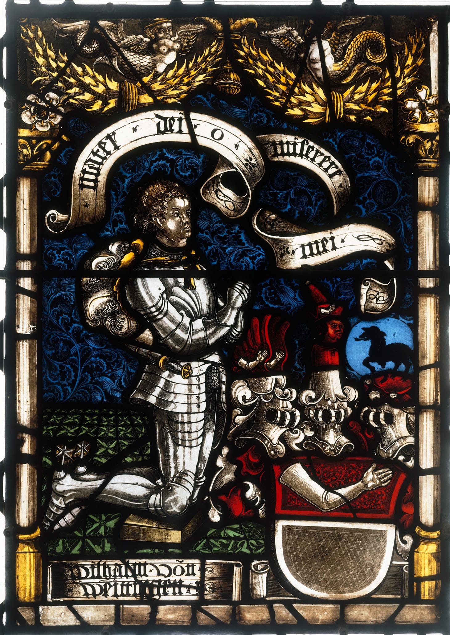 The three works Halbach will focus on all “illustrate key moments in the evolution of armor,” the Cloisters tells Hyperallergic. The works are the “Sepulchral Monument of Ermengol X, Count of Urgell” (ca. 1300–1350); a “Heraldic Panel of Wilhelm von Weitingen” (1518); and the tomb effigy of “A Knight of the d’Aluye Family” (after 1248–by 1267) — which depicts a French knight mysteriously holding a Chinese sword. The talk will not focus on armor or artifacts of medieval warfare itself, but rather on the secrets that these depictions in art and others like them hold.