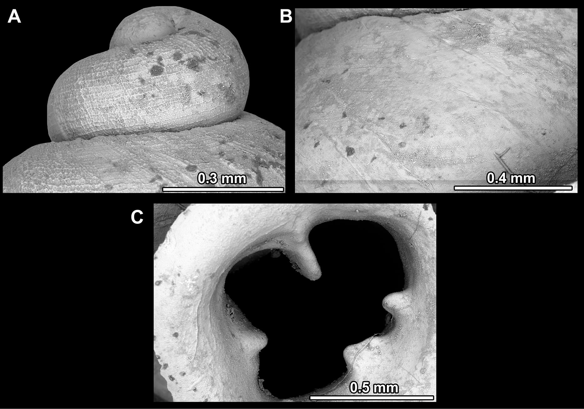 At only about two millimeters in width and three millimeters in height, or less than 0.08 and 0.12 inches, respectively, the shell of the Anauchen picasso is comprised of around four and a half to five perfectly defined whorls and a puckered opening with four teeth-like structures. The samples identified in the article were found in the province of Prachuap Khiri Khan in Thailand.