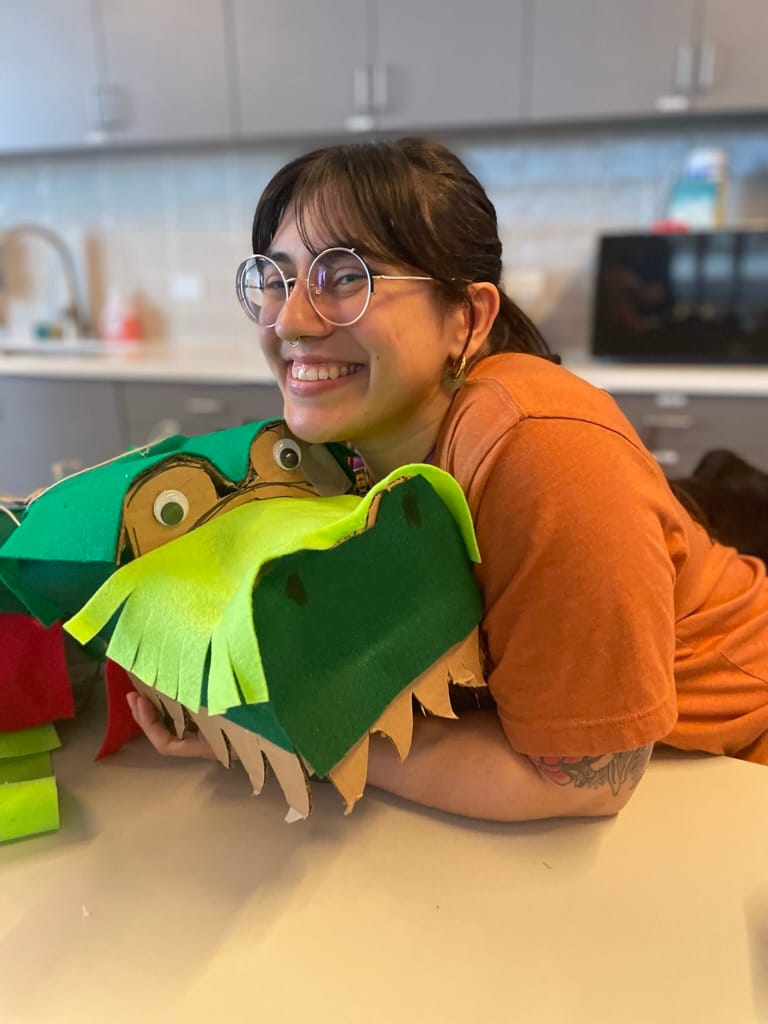 Many of the puppeteers have backgrounds in interdisciplinary arts, but each had a unique journey. Graci Horne (Sisseton Wahpeton & Hunkpapa Lakota/Dakota people), for instance, is a multi-disciplinary artist-teacher with a degree in museum studies. At the Institute, she prompted conversations about the preservation and protection of Indigenous puppetry. Horne discussed how important it is, when sharing oral or traditional stories within the puppet community, to communicate and establish that it is not for others/non-Natives to take, capitalize on, or share as their own.