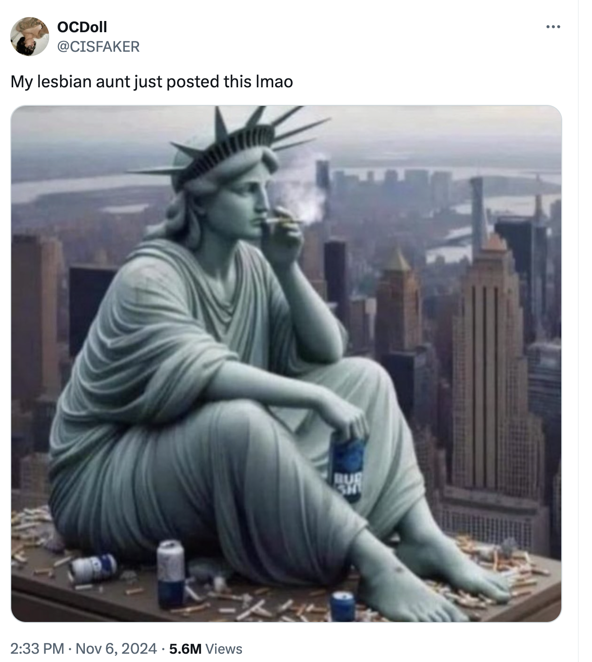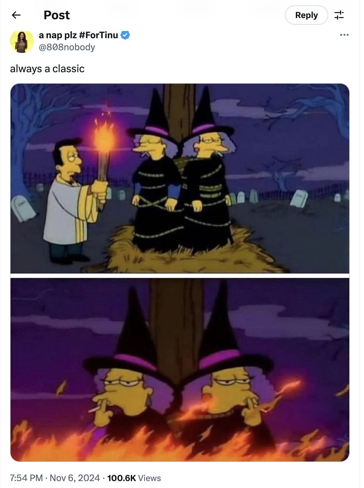 I remember the November 2016 election, mostly because I was a freshman in high school, but also because Macklemore released his cheugy trap ballad “Wednesday Morning” in response to Trump’s first election and I liked it (because I was 14, please leave me alone). Eight years later, on another Wednesday morning, I was looking — as Macklemore writes in his song — “for change on the couch.” But on this Wednesday morning, I was also looking for memes. The day after the election, though, social media was so saturated with dread that I couldn’t parse through my feeds without losing my mind.