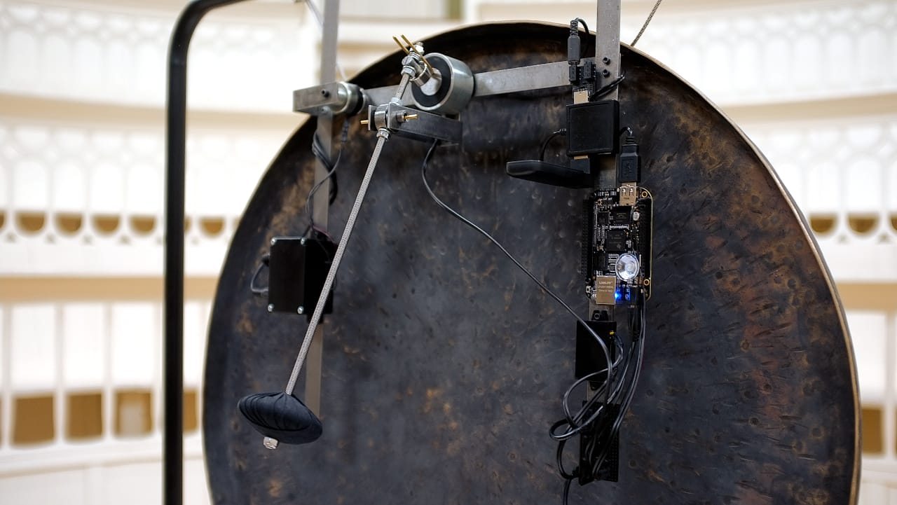 Building the piece, the artists first connected “Extinction Gong” to a virtual private network (VPN) gateway over a 4G uplink, polling the International Union for Conservation of Nature’s (IUCN) Red List for any extinctions. The artists told me, “we soon discovered it can take decades for the IUCN to reevaluate the categories of species, a cycle seen as too slow given the accelerating changes in habitats observed by scientists.” Crashes every 19 minutes is too fast for leading scientific documentation to keep up.
